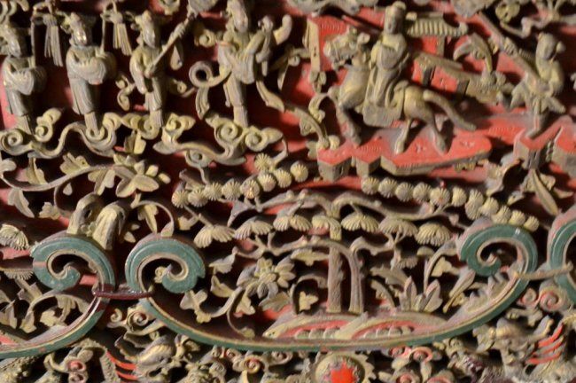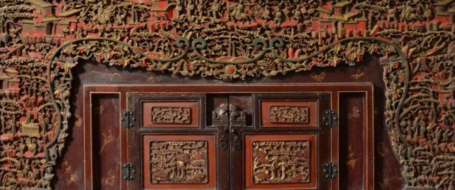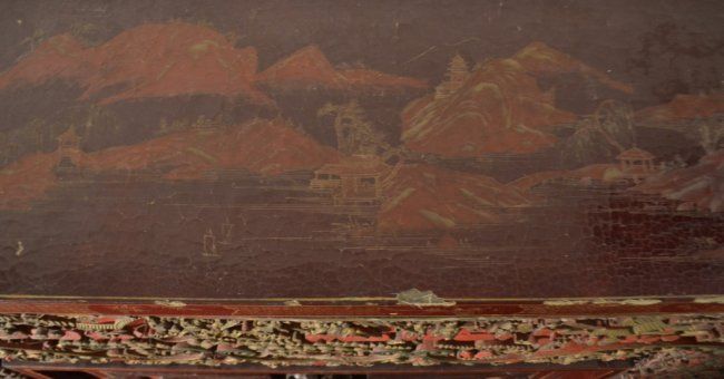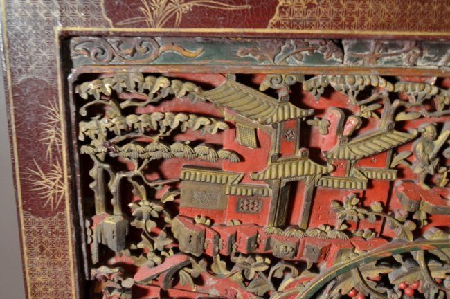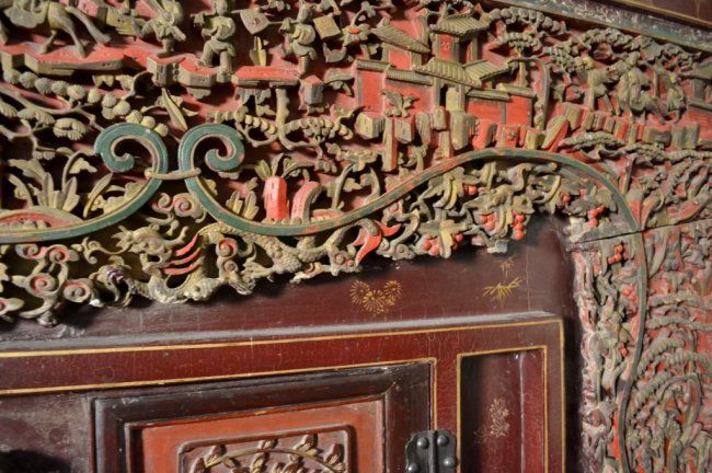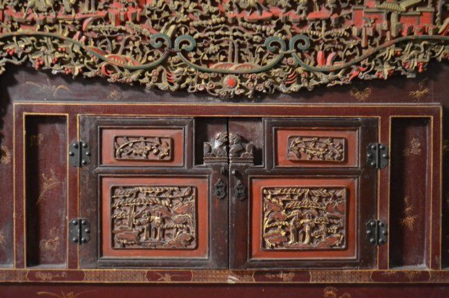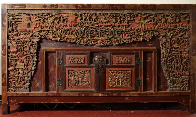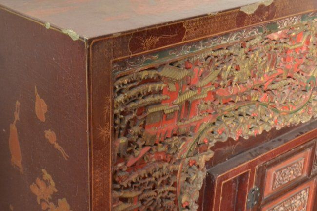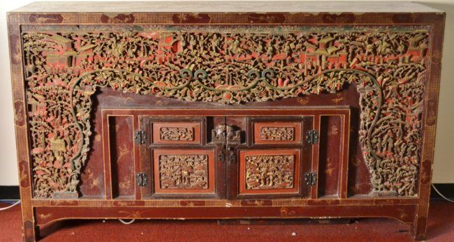Chinese Carved Wood and Lacquered Cabinet 80" x 45.5" x