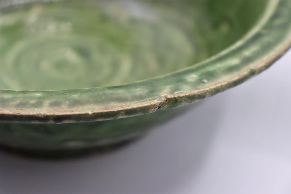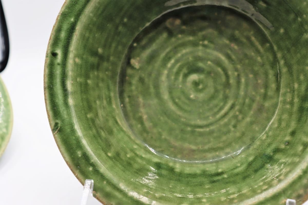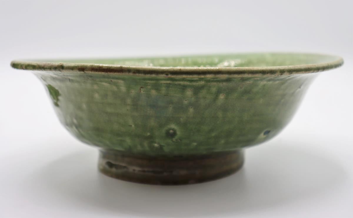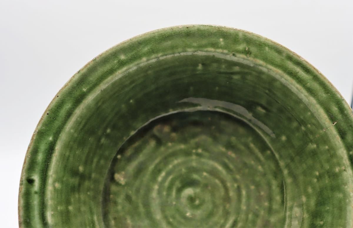 Three dark green Celadon glazed vessels, two bowls and one vase, all 20th century.