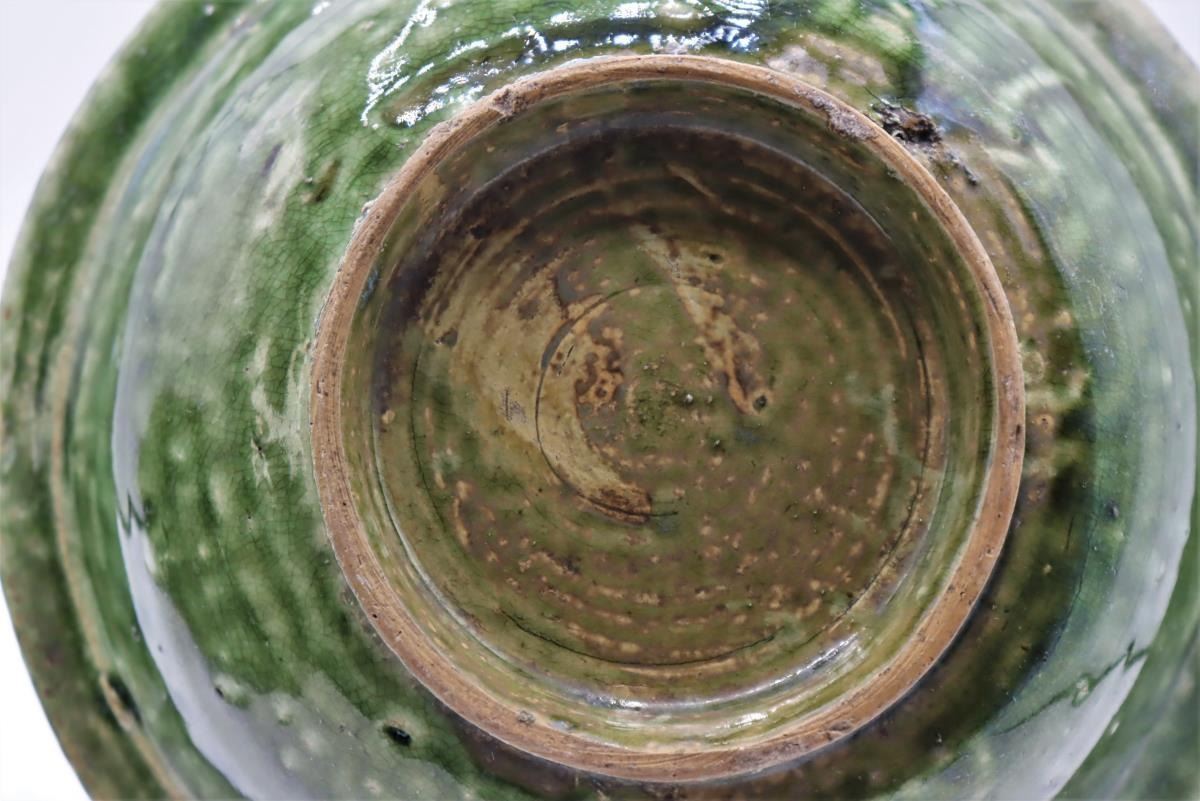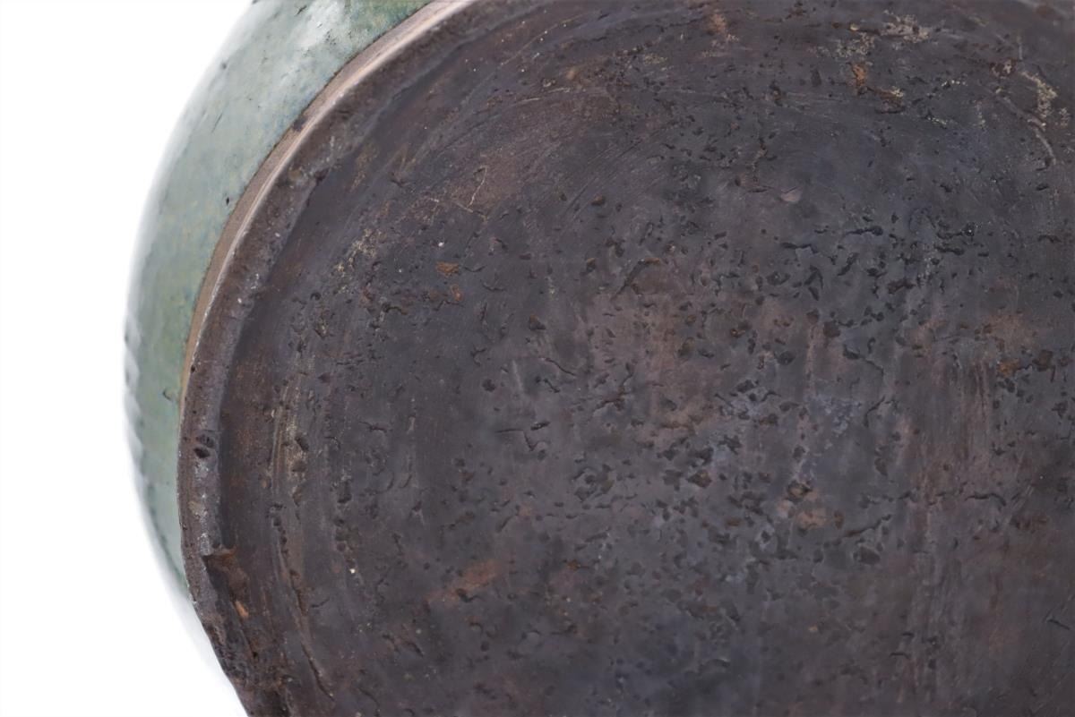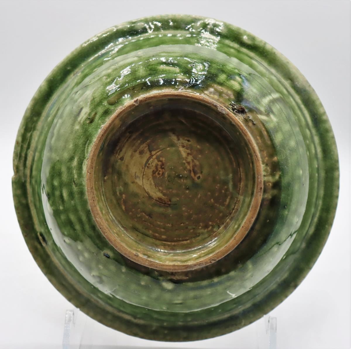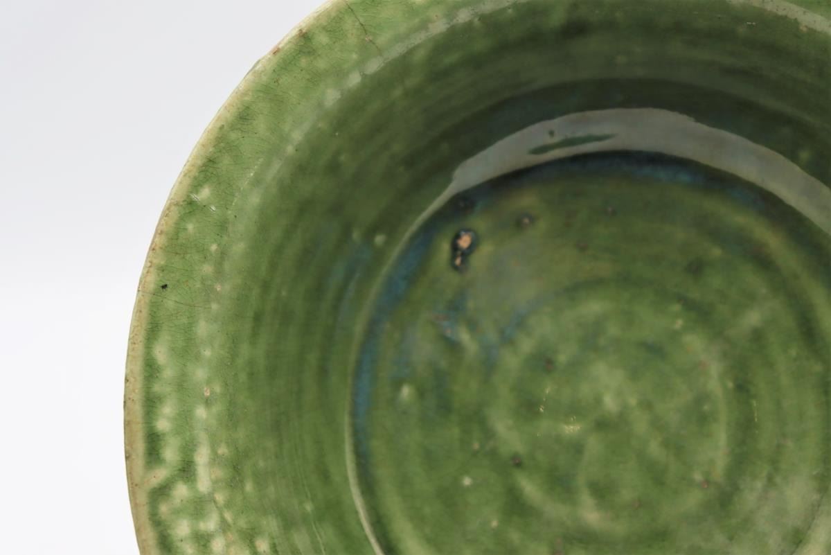Three dark green Celadon glazed vessels, two bowls and one vase, all 20th century.