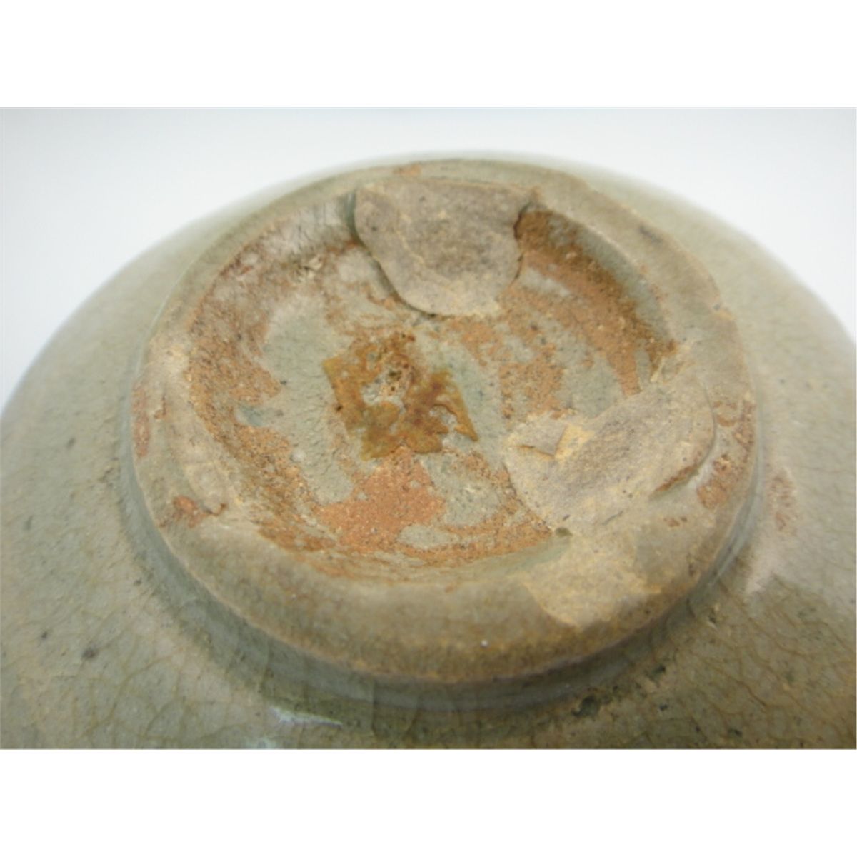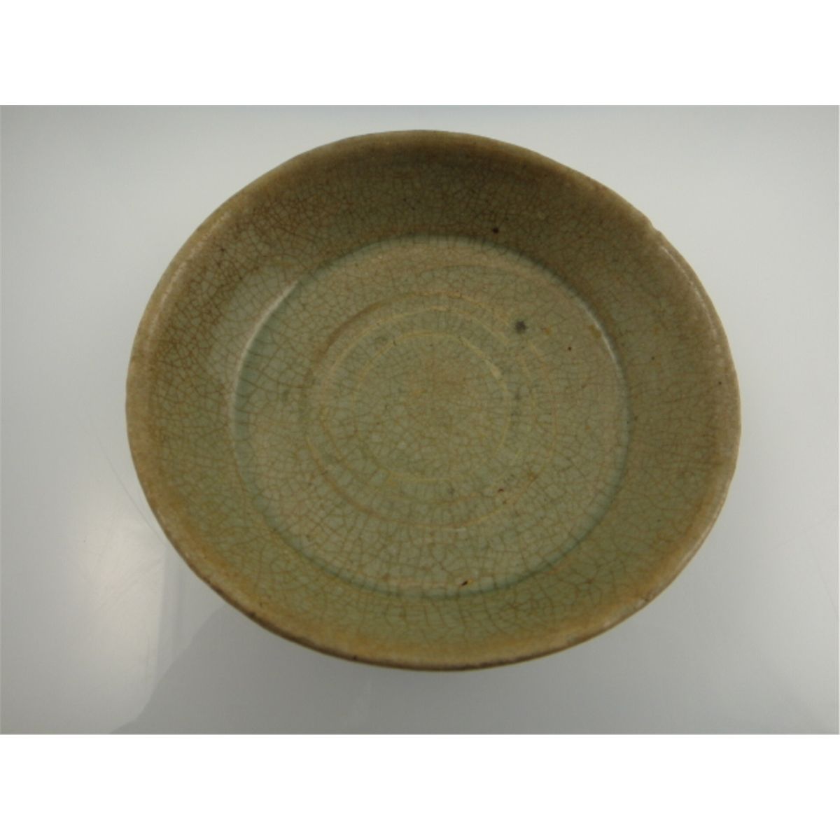 Chinese celadon glazed porcelain saucer; 4 1/2" diameter, D: 11 cm