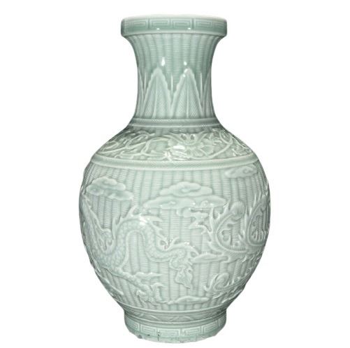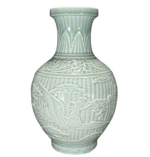 Chinese Celadon Porcelain Vase, decorated with dragon and phoenix and clouds. It was created by skilled craftsmen in traditional style with fine handcrafts. the handwork is very fine with incredible detailling. This is a great piece of valuable collection, a valuable personal alter or a very good present. Don't miss out this chance to get it .Good luck to you!