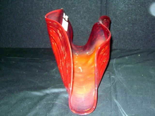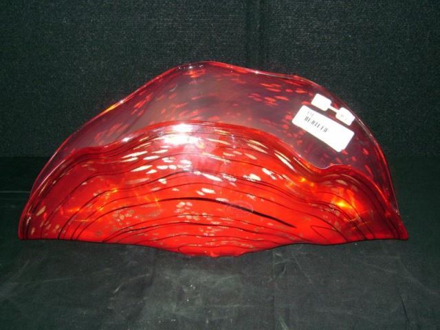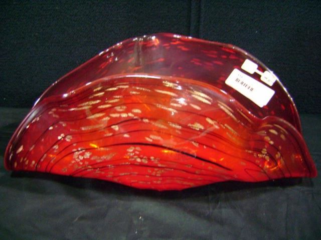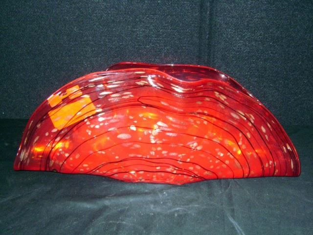 Chinese Clamshell Red Glass Centerpiece 7 1/2"x7"x17 1/4" Retail: $300.00