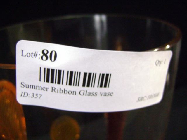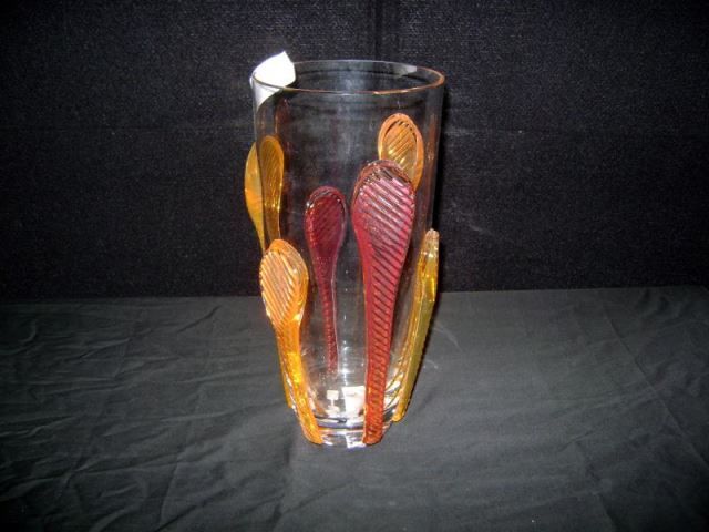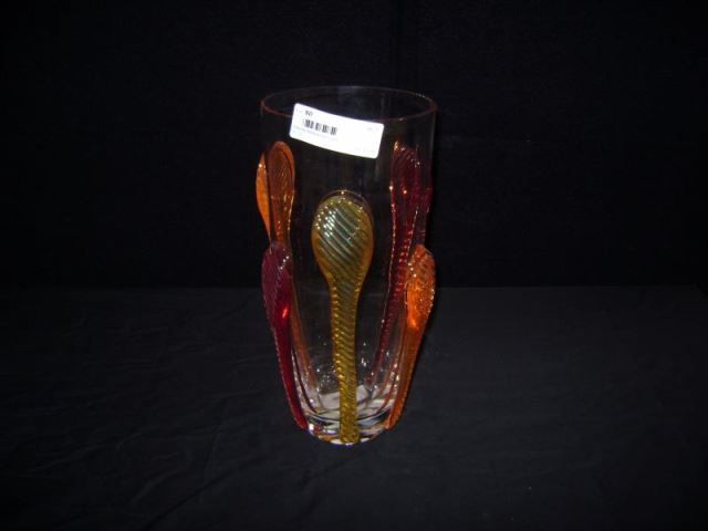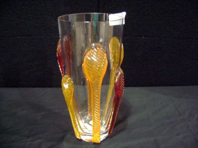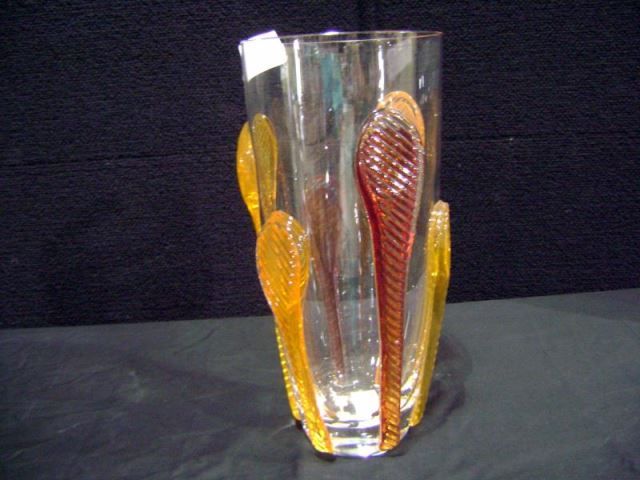 Chinese Clear Fluted Vase w/ Applied Vertical Glass Ribbons 12"x6 1/2" Retail: $510.00