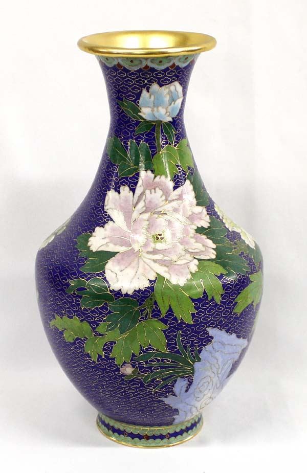 Chinese Cloisonne' Gold Gilt Vase, measures 7.5'' x 12.5''
