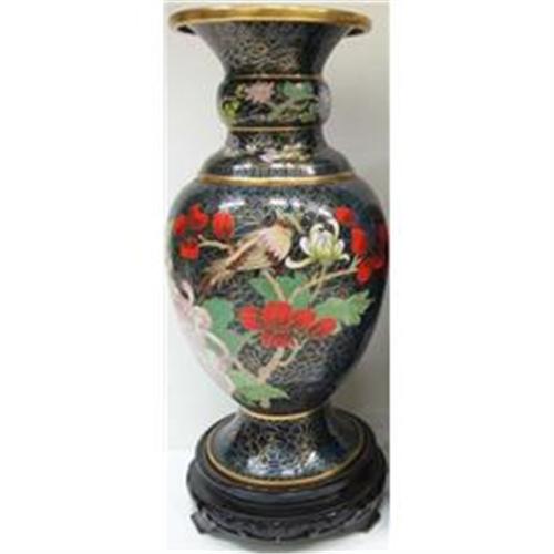 <tr><td>Title:Chinese Cloisonne Vase on stands Birds &</td></tr>