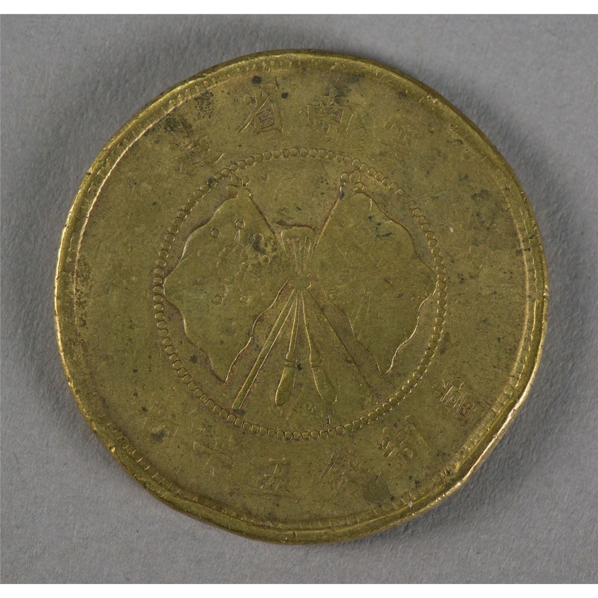 Chinese Commemorative Copper Coin Yunnan Made; D: 4 cm, Thickness: 0.21 cm, 18 grams; Provenance: private Canadian coin collector