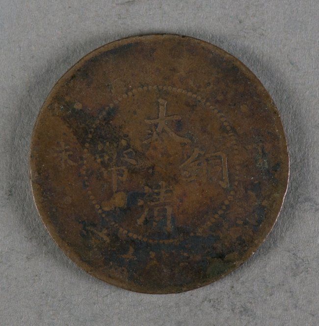 Chinese Copper Coin Qing Mark; D: 2.9 cm, Thickness: 0.13 cm, 4 grams. Provenance: private Canadian coin collector