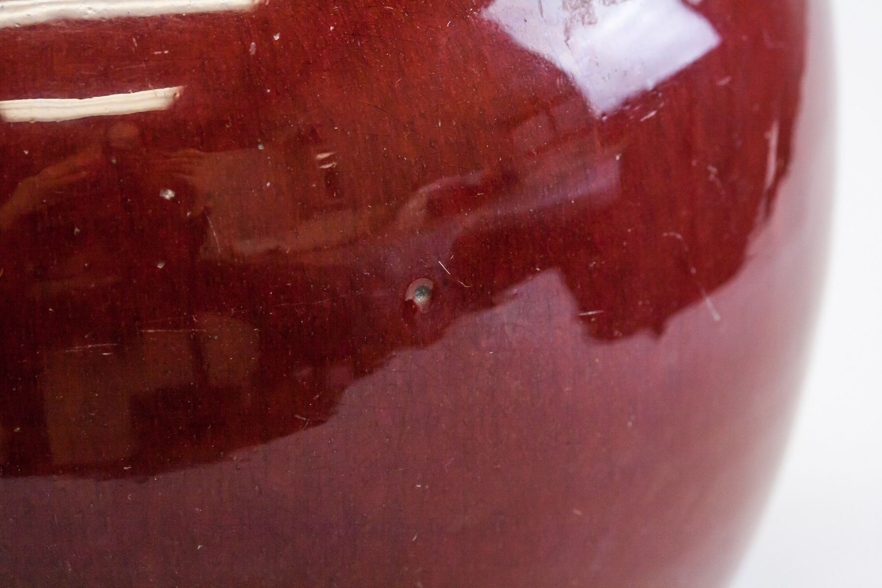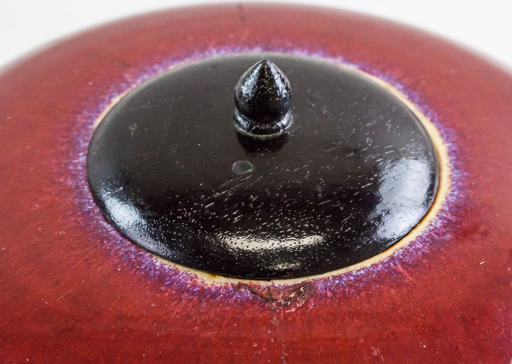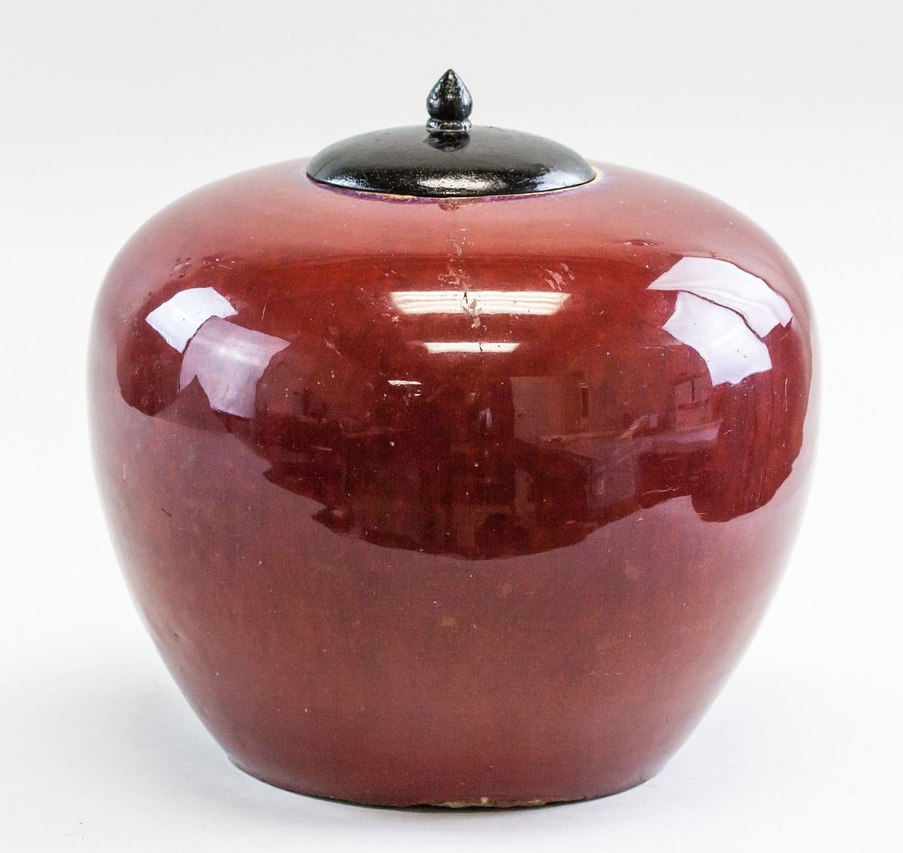 Chinese porcelain jar. Of copper red tone. Of globular body. With cover. Sold as is, in present condition. 22 x 22 cm, 2547 grams.