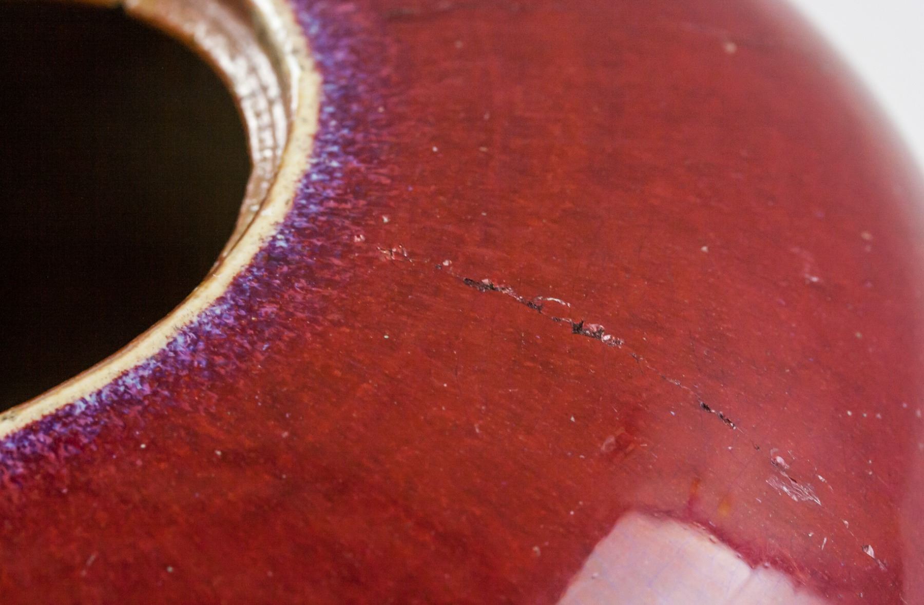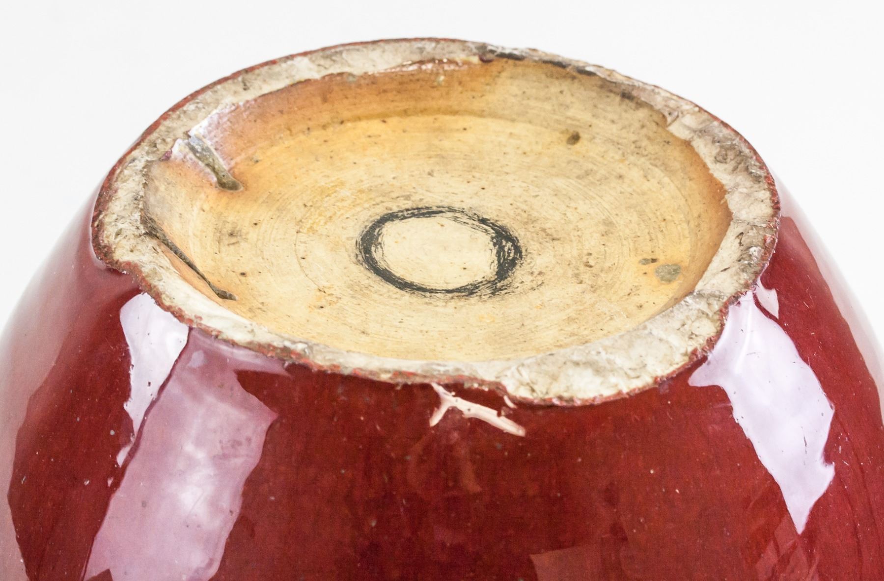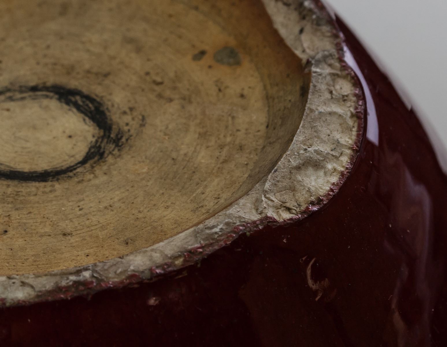 Chinese porcelain jar. Of copper red tone. Of globular body. With cover. Sold as is, in present condition. 22 x 22 cm, 2547 grams.