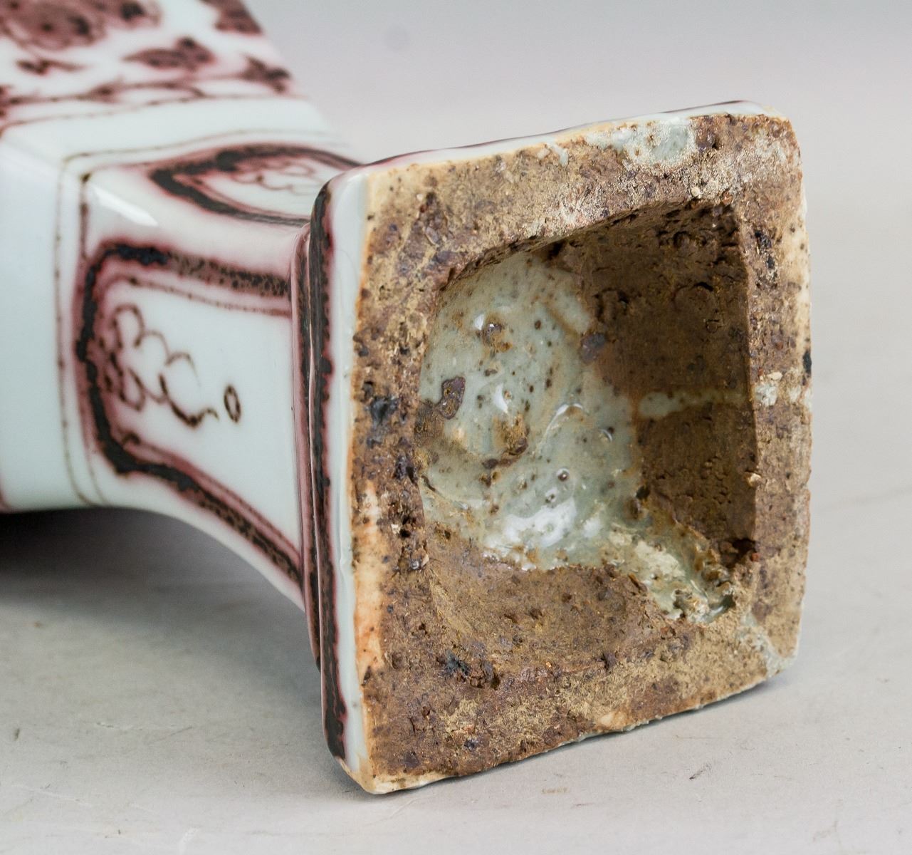 Chinese copper red porcelain vase. Featuring a lobed body, flanked with 2 elephant head form ears. Painted with flowers. 27 x 9 cm, 968 grams
