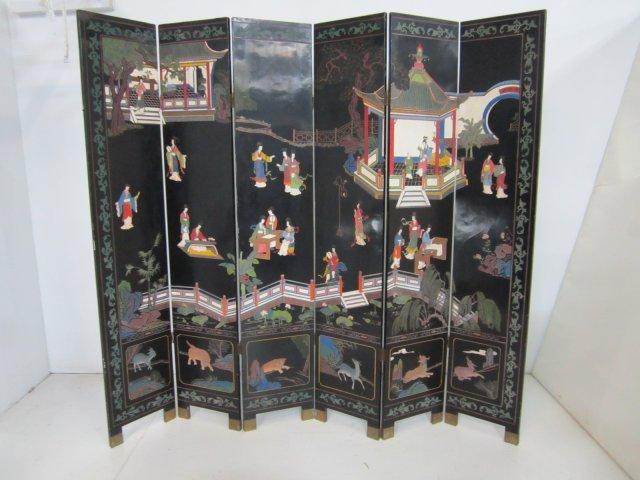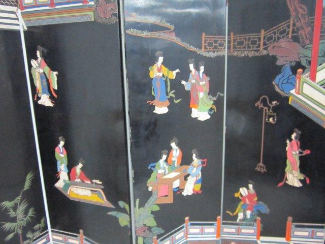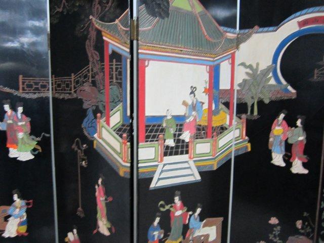 6 paneled, early-mid 20th c., scenes on both sides. Approx. 84" H x 16", each panel. Please read our terms of sale.