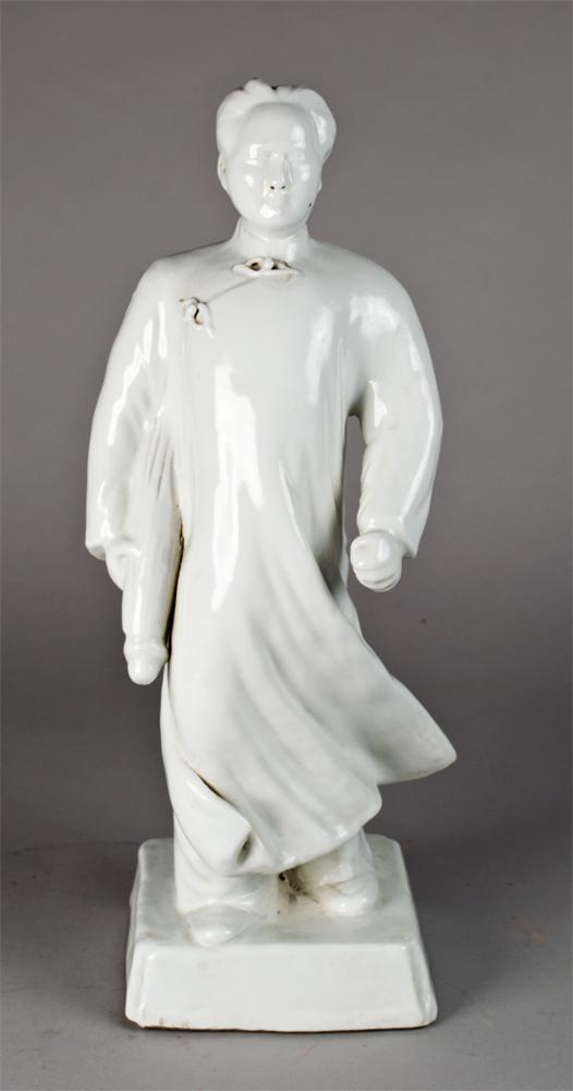 Depicting chairman Mao Tse Tong, holding an umbrella, very well done with glaze very large, 18" H, circa 1950's-1960's.