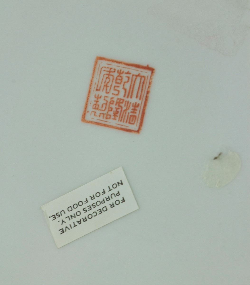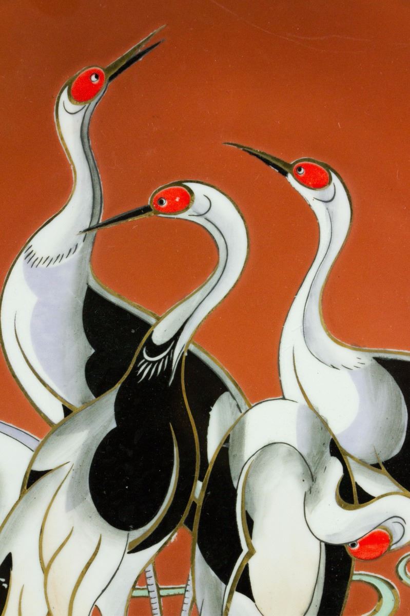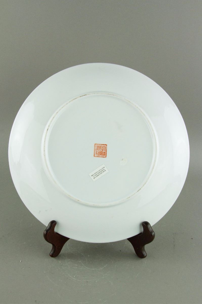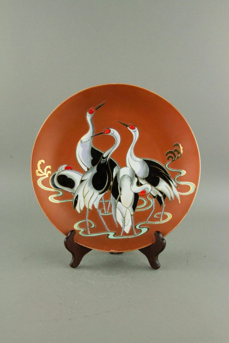 Chinese porcelain plate; painted with cranes on red ground; six-character Qianlong red seal mark on base; H: 2.5 cm, D: 2.7, 745 grams
