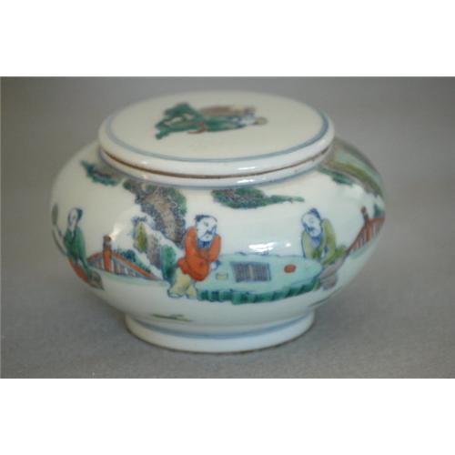 Chinese Dou--Cai Porcelain Mini Jar with cover . good condition.