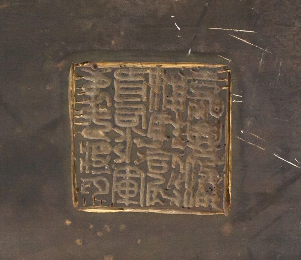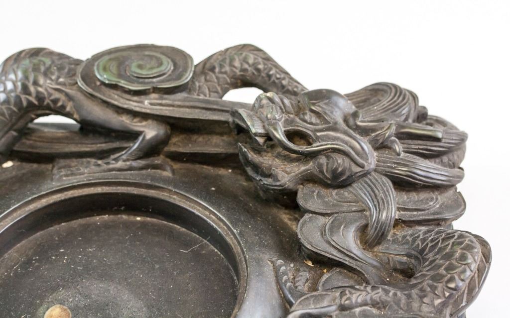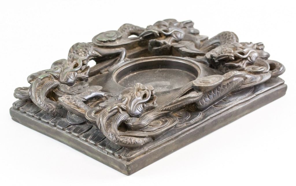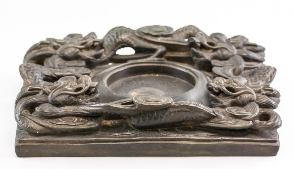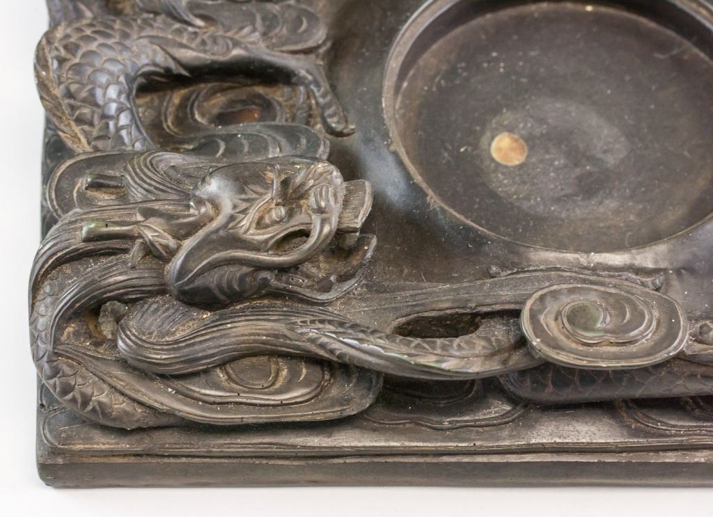 Chinese ink stone. Carved with dragons. Seal on base. 24 x 30 cm, 7kg