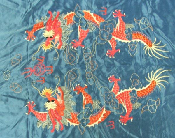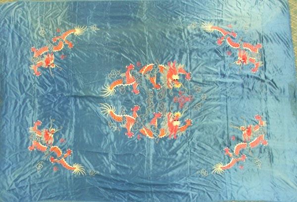 Asian Silk Embroidered Tablecloth, measures approx. 53.5'' x 74.5''. SHI $20.