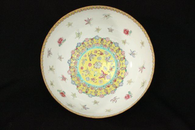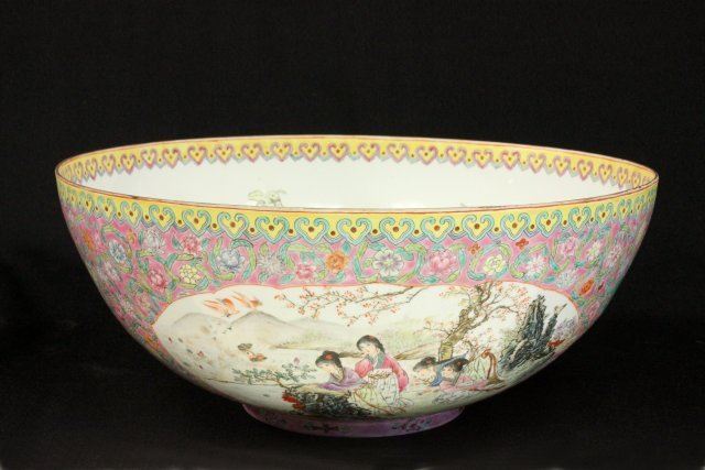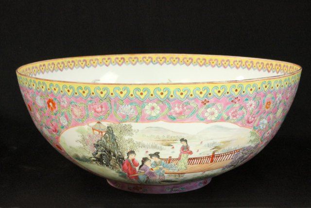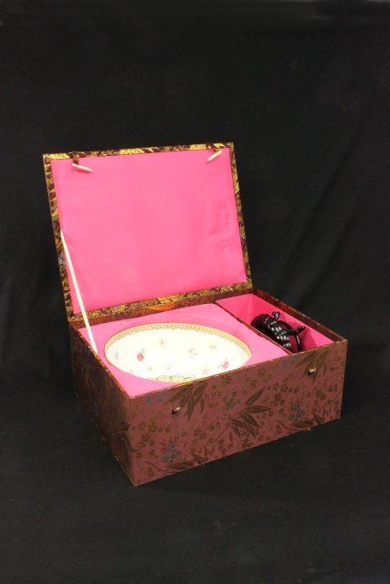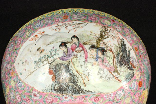 2 panels of women fishing, interior floral & butterfly design. Approx. 12 1/2" D x 5 1/2" H.