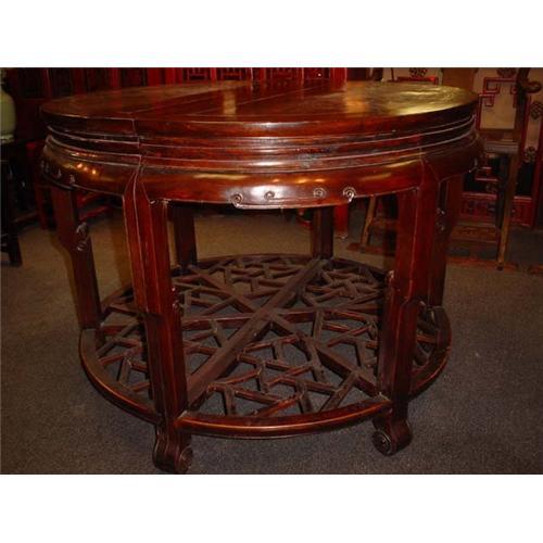Lovely patina on this eight immortas table which have some decorative carving along the base but otherwise is simply stated. This two half piece also can be used separately as demi lune table.