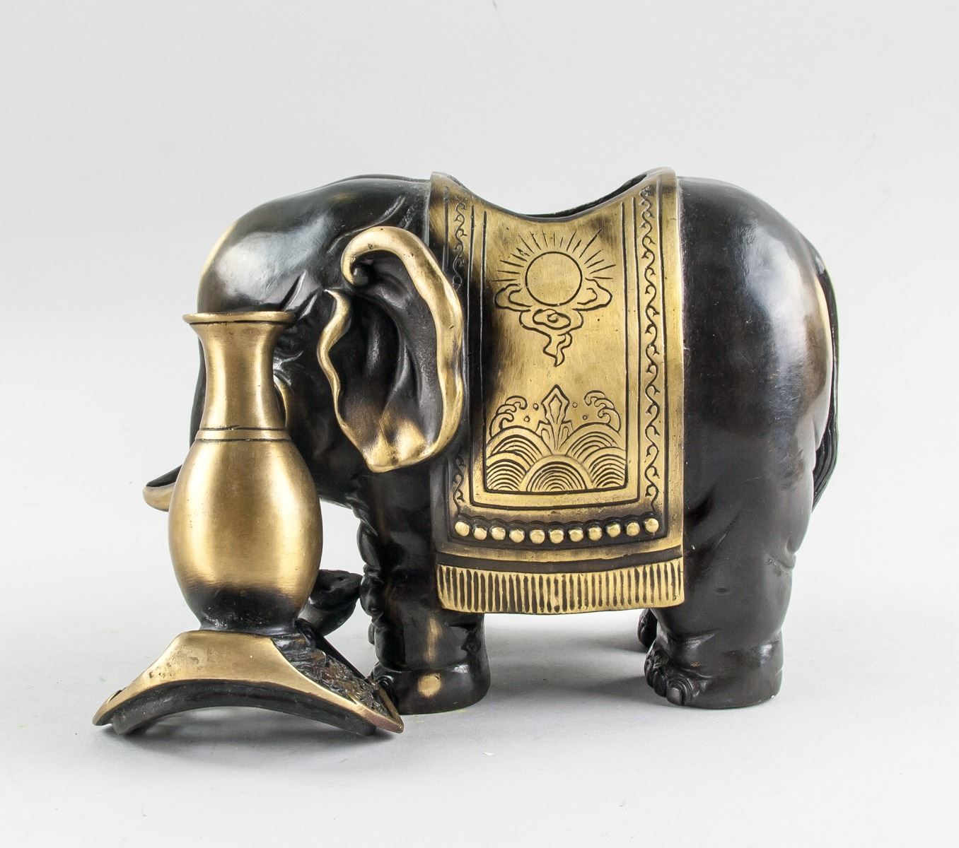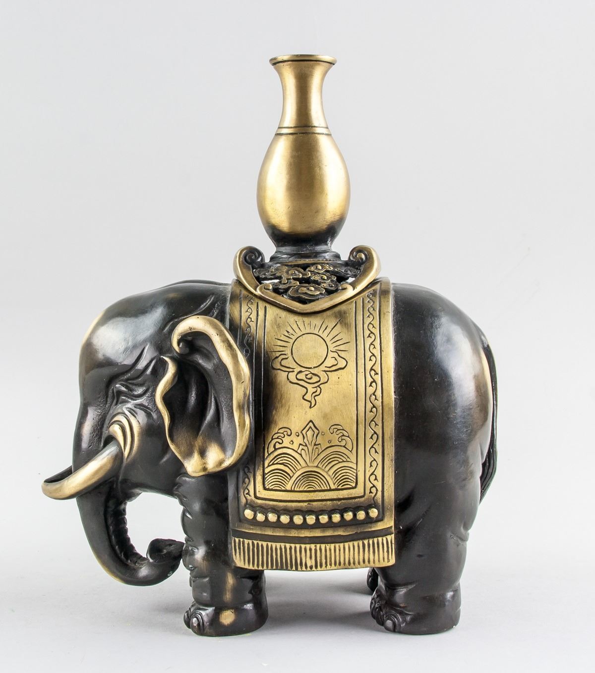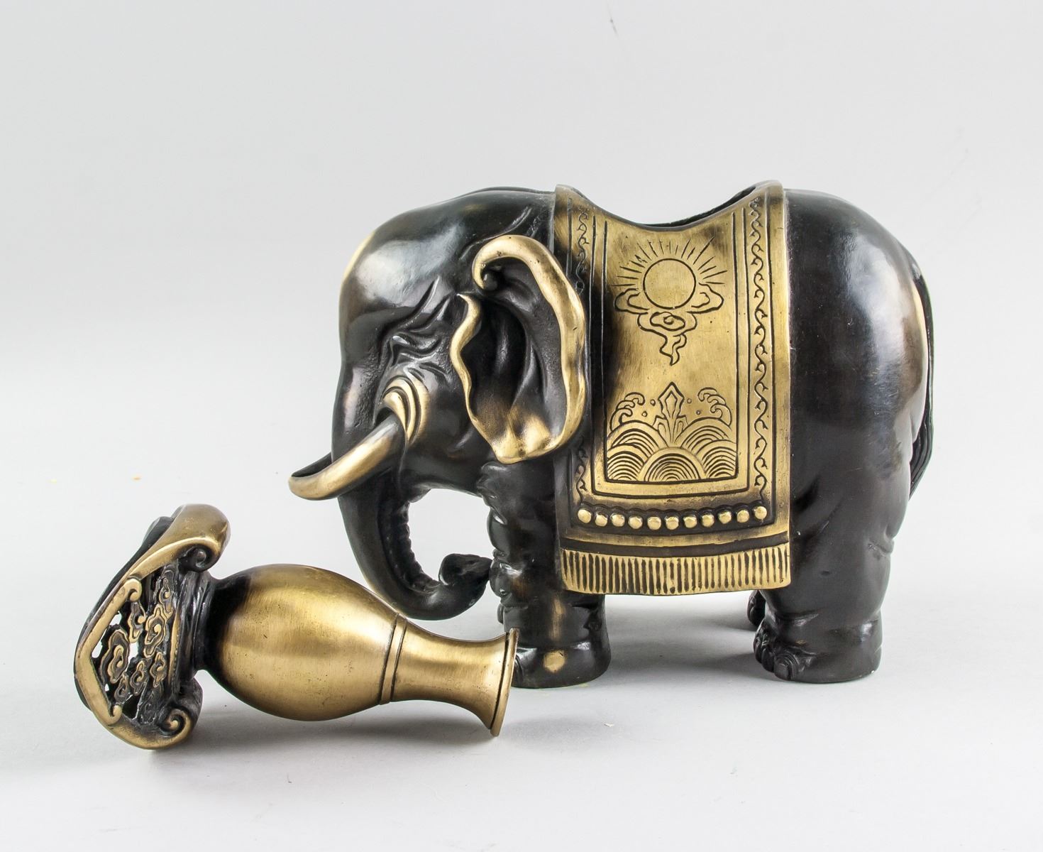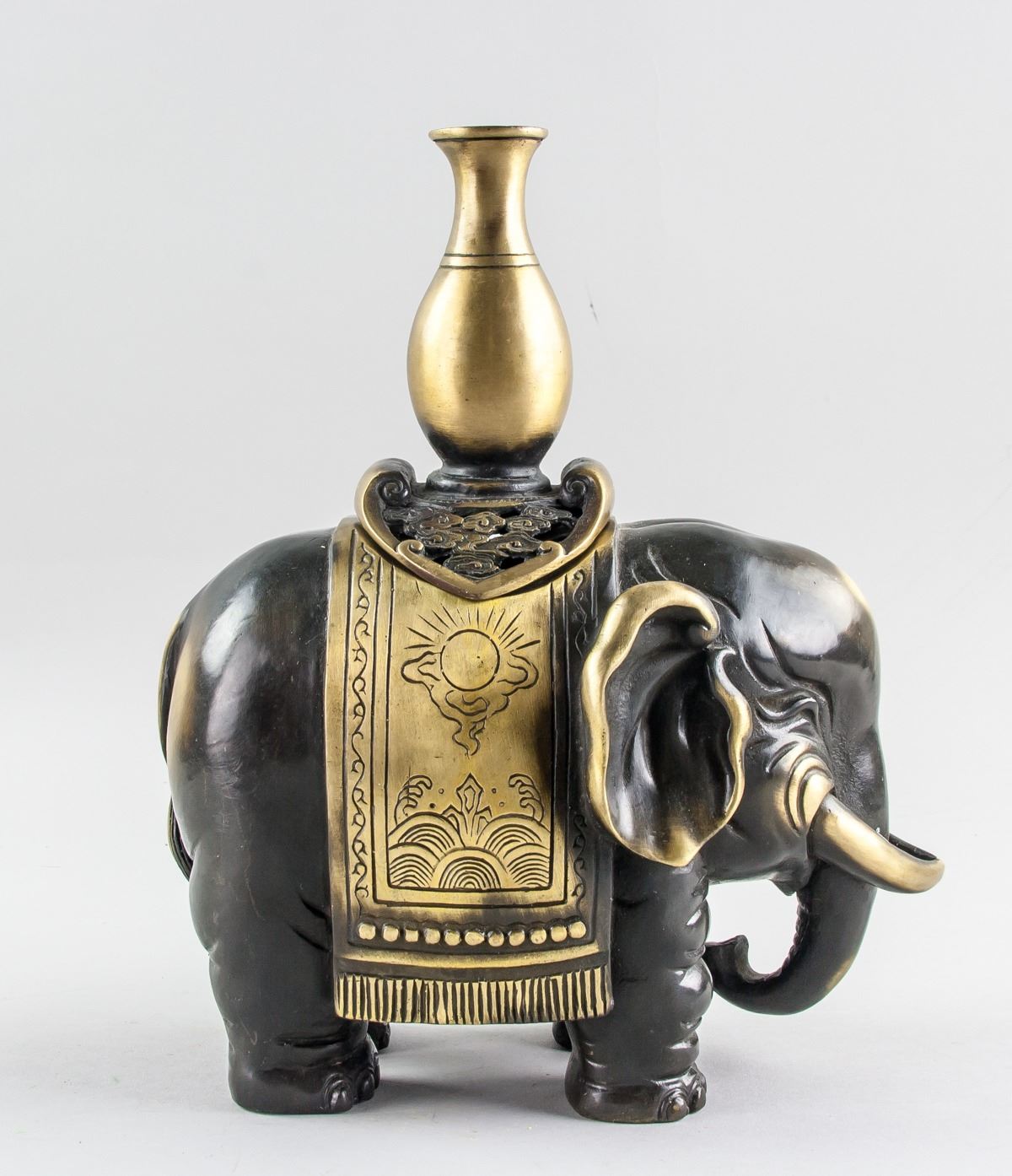 Chines bronze censer, featuring an elephant form body, with removable top lid, with open work cloud carving, 23 x 21 cm, 1645 grams. PROVENANCE: Property of a gentleman (East Toronto, Canada)