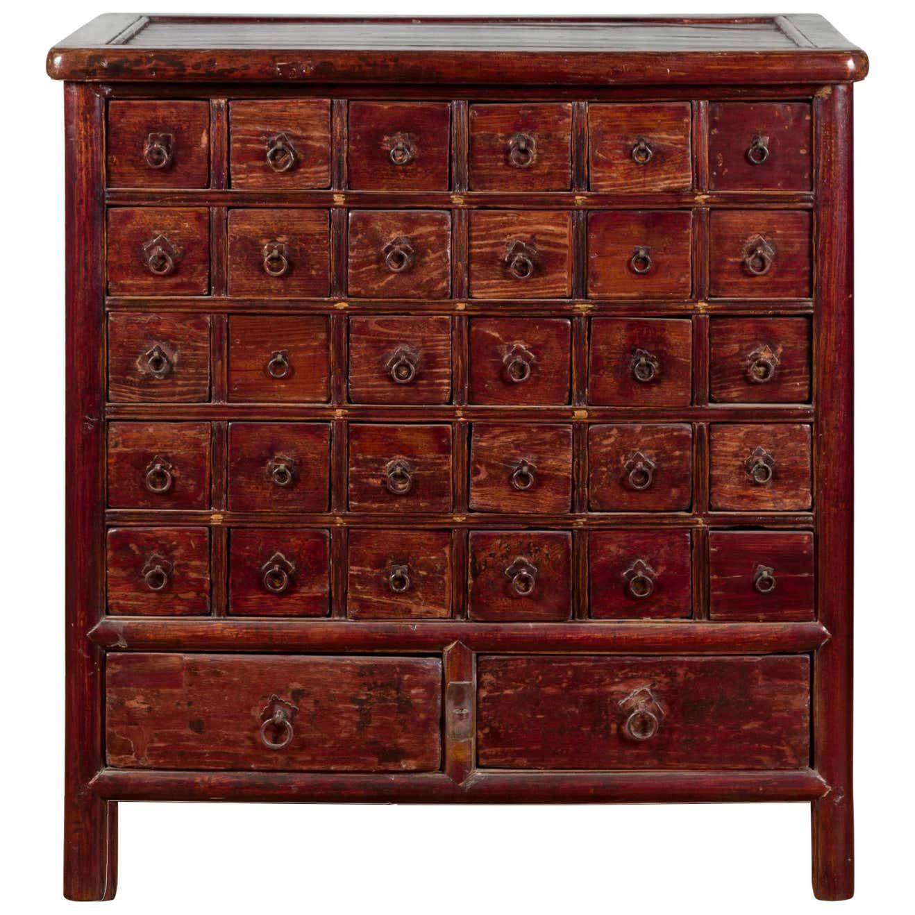 Qing Dynasty Period Apothecary Chest with 32 Drawers and Aged Patina It was created by skilled craftsmen in traditional style with fine handcrafts. the handwork is very fine with incredible detailling. This is a great piece of valuable collection, a valuable personal alter or a very good present. Don't miss out this chance to get it .Good luck to you!