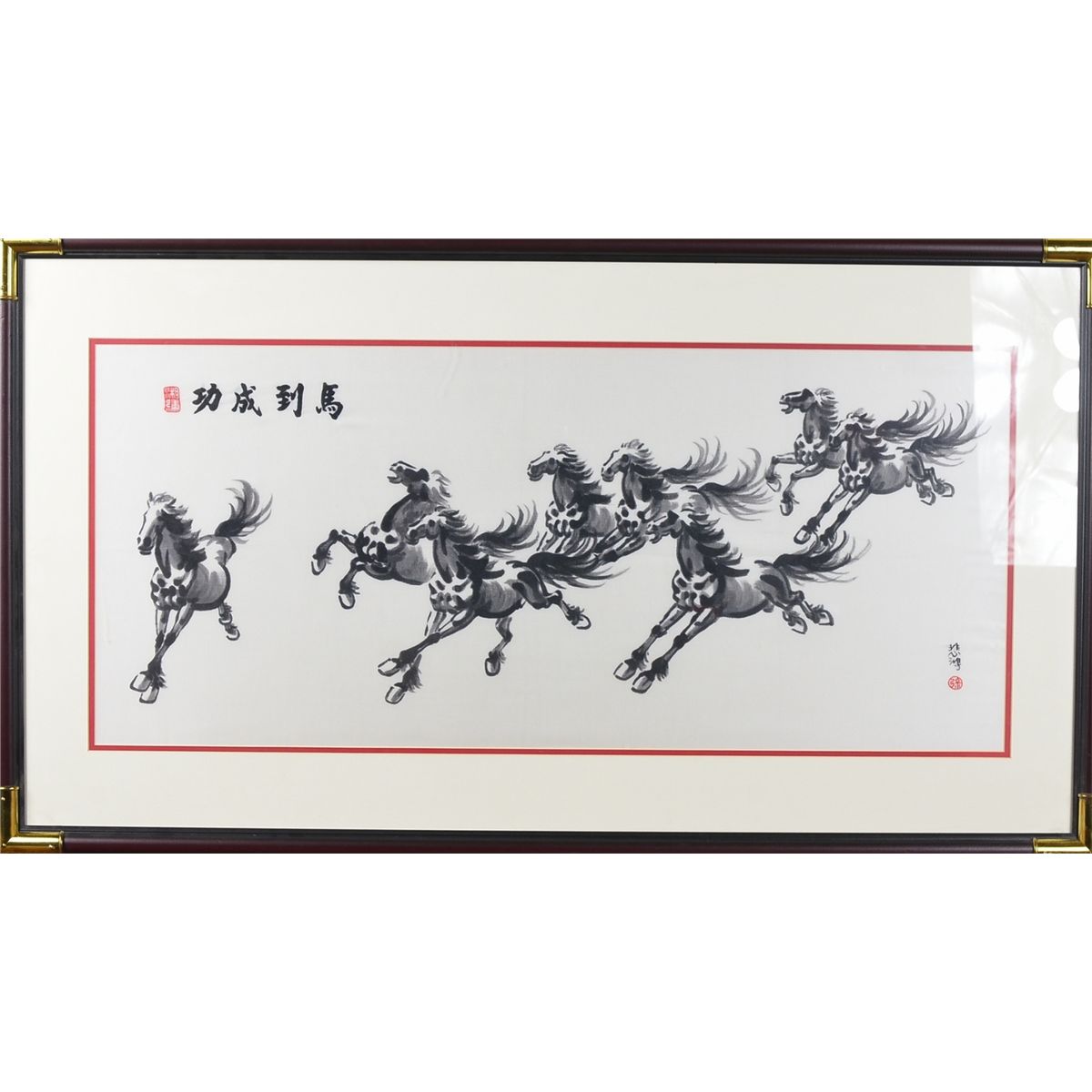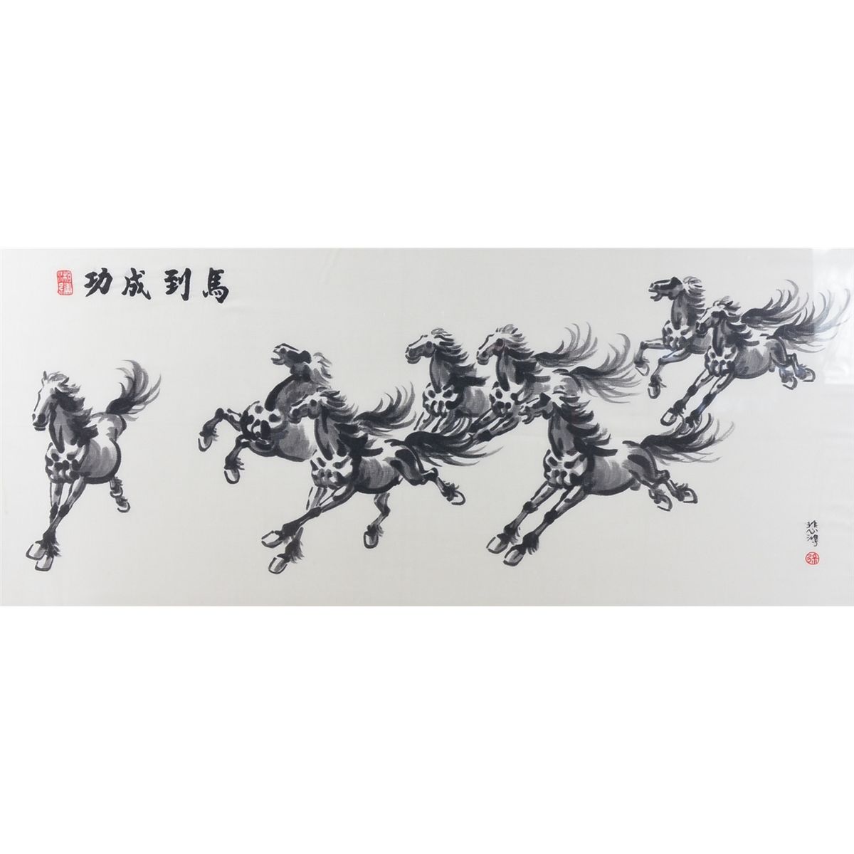 Chinese embroidery of horses; 43 cm x 94 cm