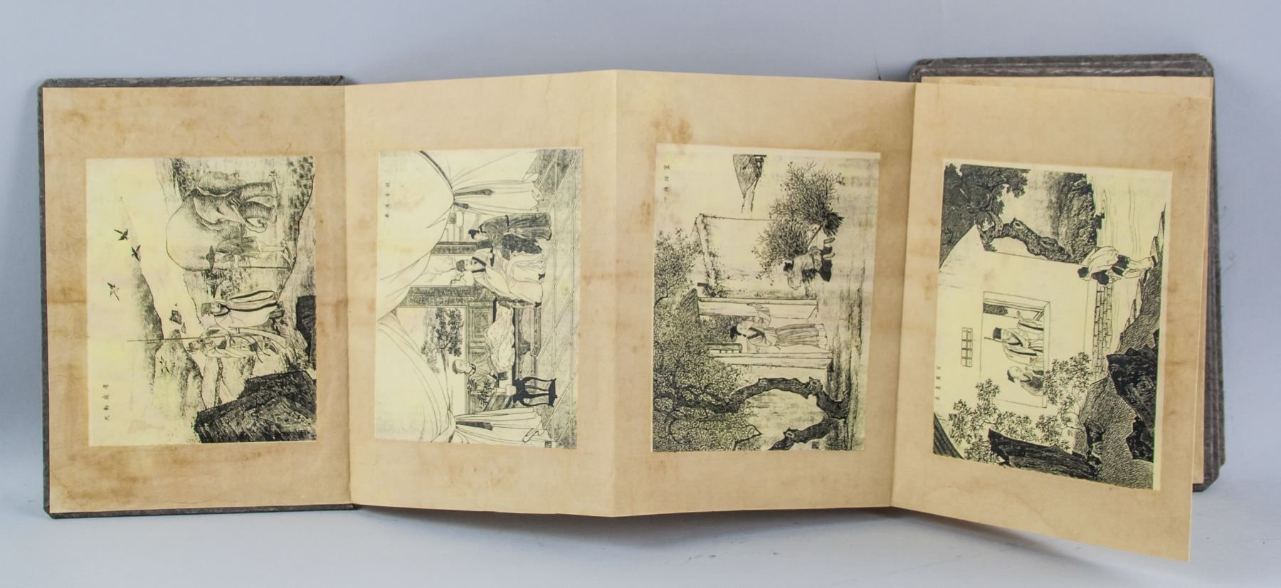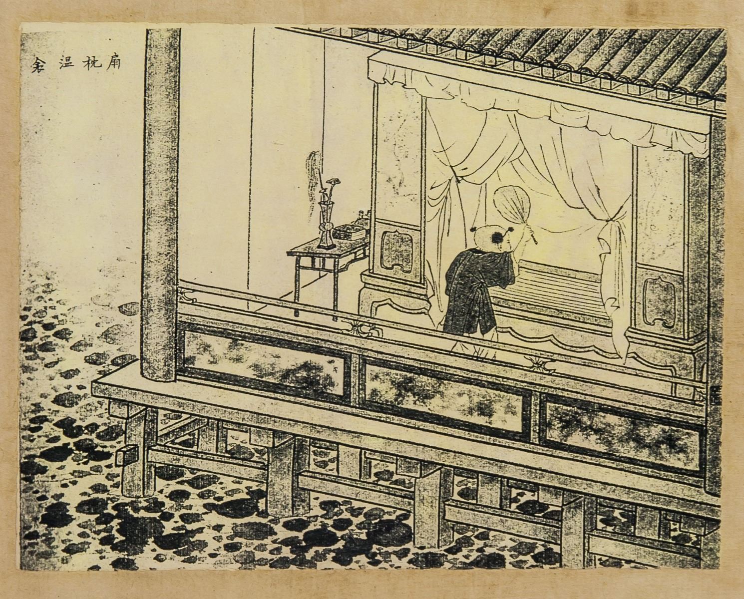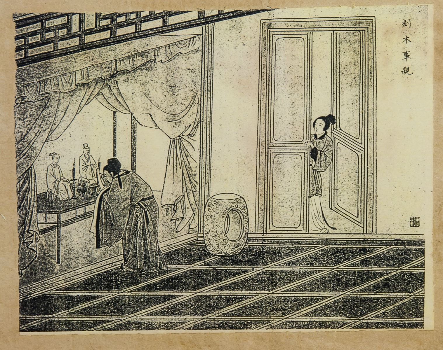 Etching on paper booklet, featuring an llustration from The Twenty-four Filial Exemplars, a classic text of Confucian filial piety written by Guo Jujing during the Yuan dynasty (1260–1368). The text was extremely influential in the medieval Far East and was used to teach Confucian moral values, 16.5 x 23 cm