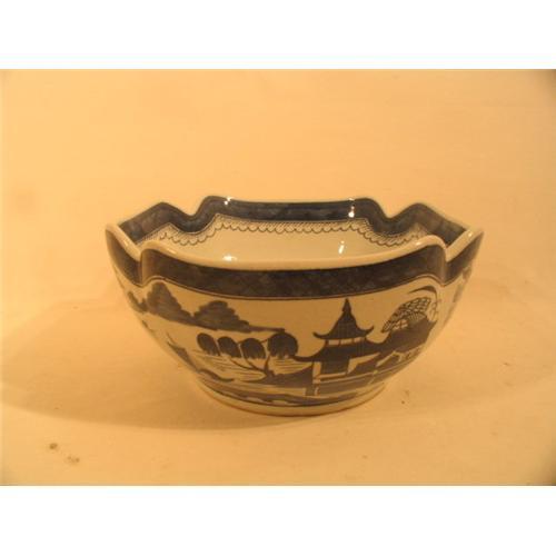 Early 19th century Canton notched corner bowl with rain and cloud border. Nicely defined decoration. Very good condition. No chips or repairs. Dates to circa 1825. Classic form and design.