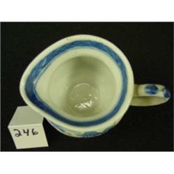 Chinese Export creamer.  Canton blue & white.  3-1/8" tall.  4-3/4" handle-to-spout.  Condition:  Very Good with random 'oatmeal' flecks.