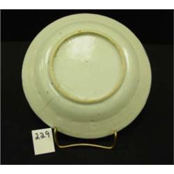 Chinese Export deep plate or rim soup.  Canton blue & white.  8-3/4" in diameter.  Condition:  Spider crack with two hairlines.  No chips or flakes.