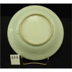 Chinese Export deep plate or rim soup.  Canton blue & white with bluish tinge.  8-3/4" in diameter.  Condition:  Small rim flake, otherwise very good condition.