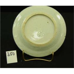 Chinese Export plate.  Canton blue & white.  7" in diameter.  Condition:  pitting & factory flaws only.