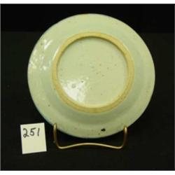 Chinese Export plate. Canton blue & white. 7" in diameter. Condition: Factory flaws, including 1" firing crack. No damage.
