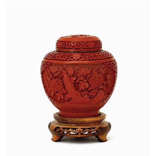 <tr><td>Title:Chinese Export Lacquer Cinnabar Tea Caddy </td></tr>