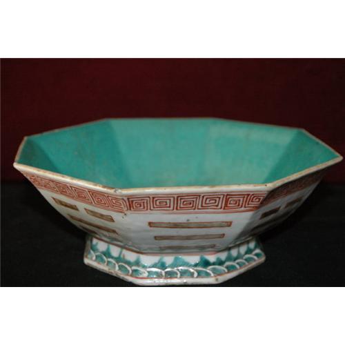 Chinese Export Octagon Shape Porcelain Bowl. 19th Century.repair on the bottom rim. otherwise good condition.