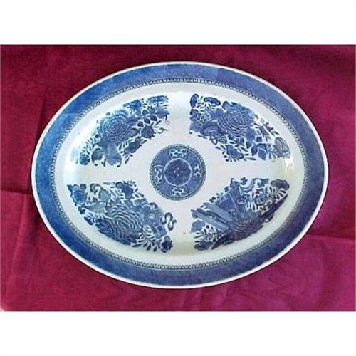 Blue Fitzhugh porcelain platter, antique Chinese Export, ca. 1800-1810. Antique Fitzhugh porcelain oval platter in blue and white, a longtime favorite with American collectors of Chinese Export. This Fitzhugh platter is from the renowned Elizabeth Sharpe (PA) collection. Just under 13 inches x 10 inches. No repairs, cracks or body chips, just slight surface wear to glaze from normal use. Condition is 9.5 on a scale of 10 perfect. This platter comes from private estate storage, not imported, authenticity guaranteed.