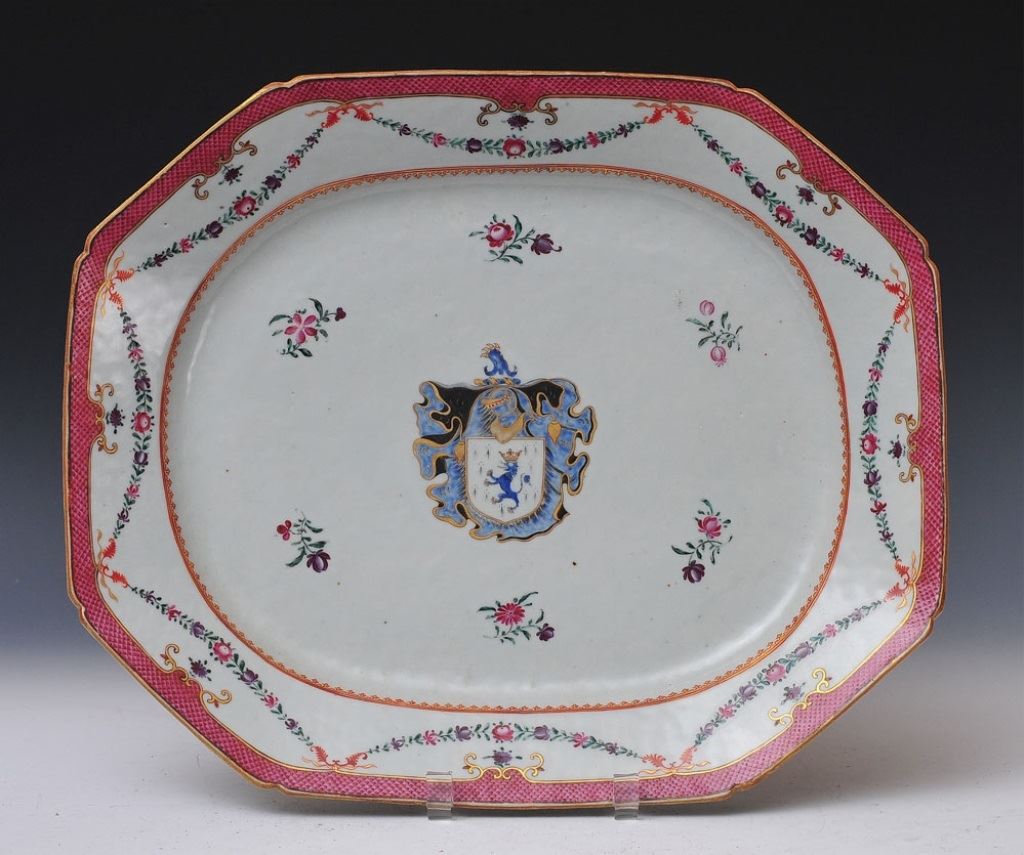 with armorial crest and garland border
