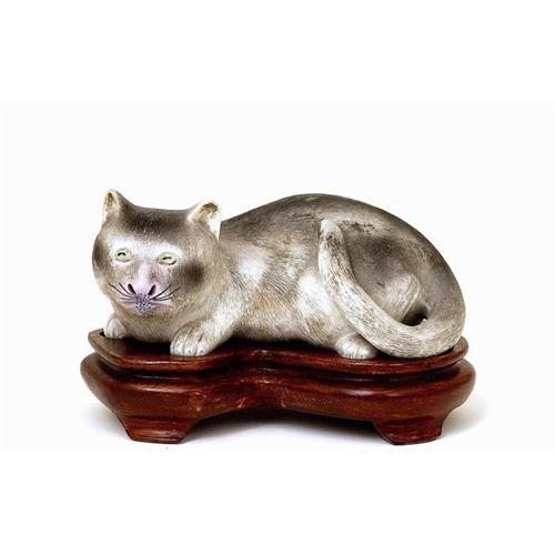 <tr><td>Title:Chinese Export Porcelain Bisque Reclining Cat</td></tr>