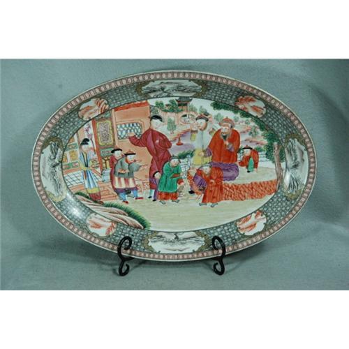 Chinese Export Porcelain Charger. Decorate wit figural. Good condition. 18" x 12".