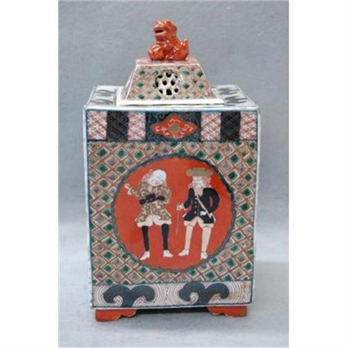 Chinese Export Porcelain Jar with cover . minor chip and some age wear. overall good condition. 19/20th century. 10" high, 6" square.