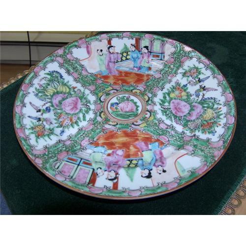 </font></strong>Chinese Export Rose Medallion Porcelain Plate - 1860's - Floral and Figural Vignettes. Floral Reserves are highlighted with colorful birds, center medallion surrounded by flora and butterflies. Beautiful plates. This plate is 10" in diameter. It is a part of a group of 6 plates, which are listed individually on this site. You may purchase by the each or as a group. If you purchase more than one plate a discount will apply, depending on the number purchased. This plate has no cracks, chips, hairlines, and is in excellent condition.</font>
