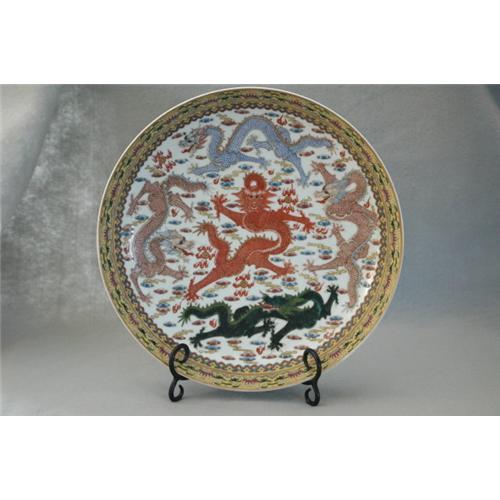 Chinese Famille Rose Dragon Charger with Mark.good condition.