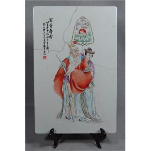 Chinese Famille Rose Porcelain Plaque. Decorate with figures. Repaired. 14.5" x 9.5".