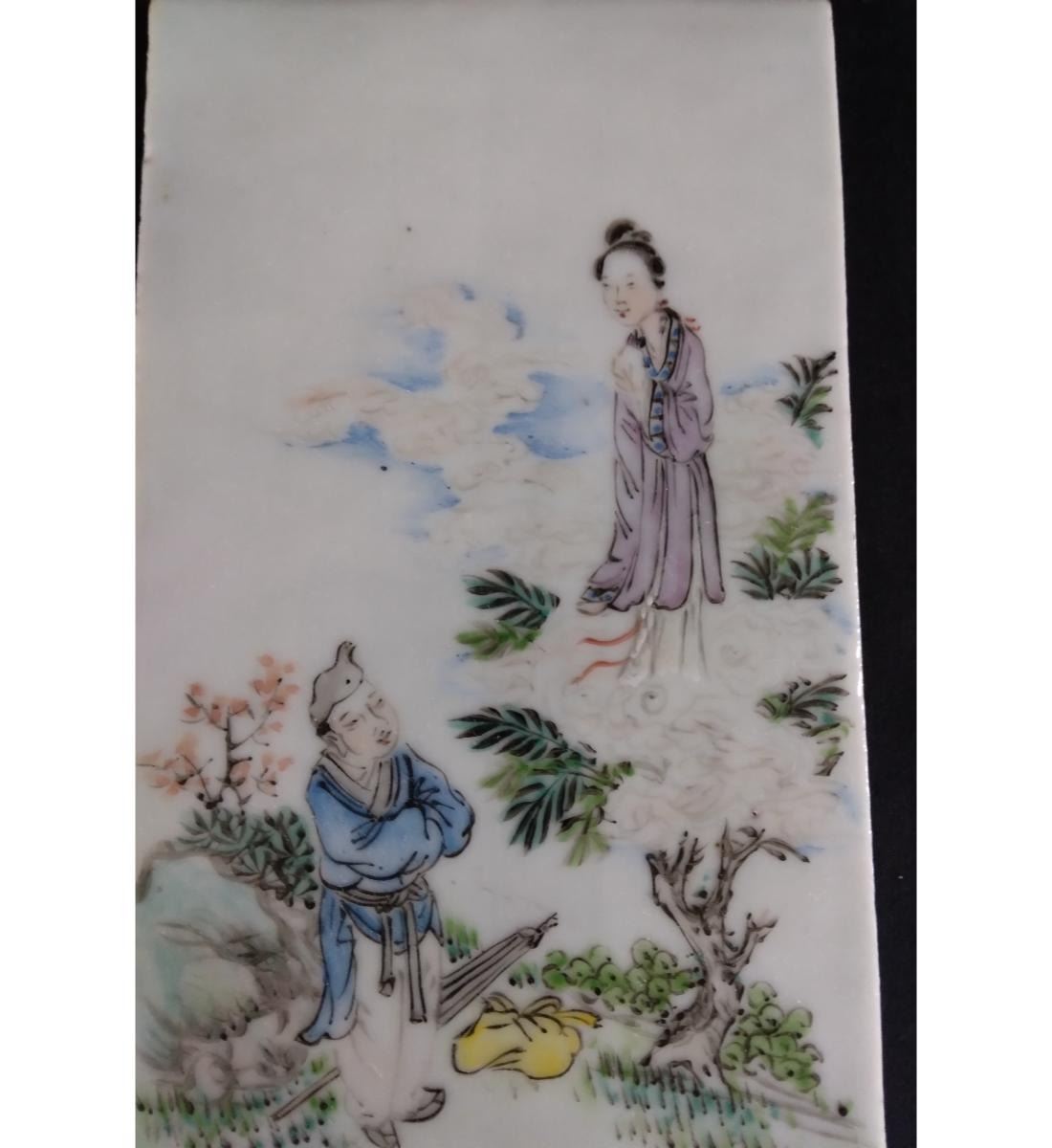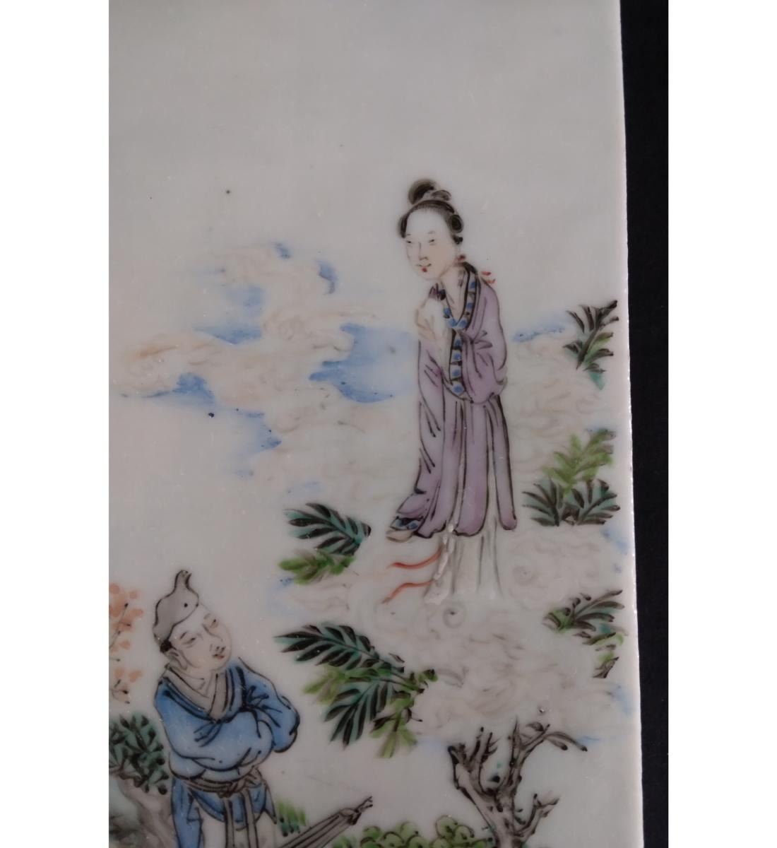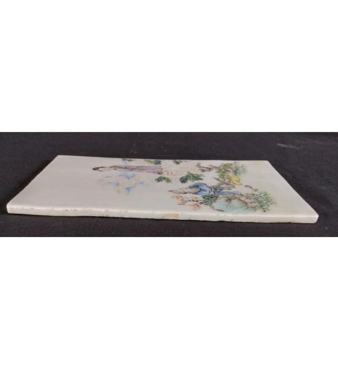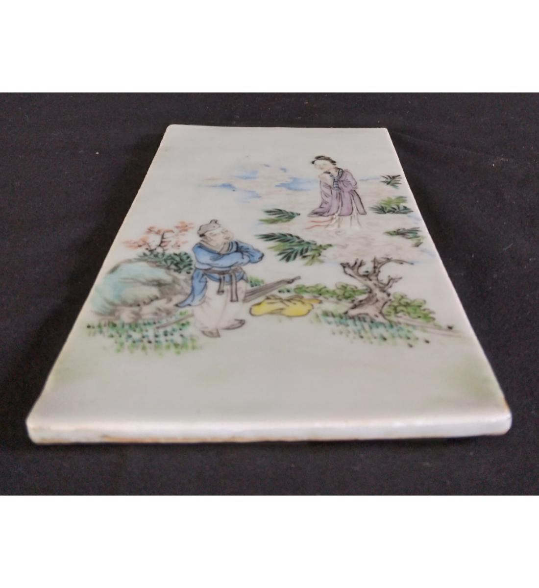 Chinese Famille Rose Porcelain Tile With Figures 19th Century. Measure 20.6 CM X 10.6 CM. Provenance: One Person Private Estate Central Florida.