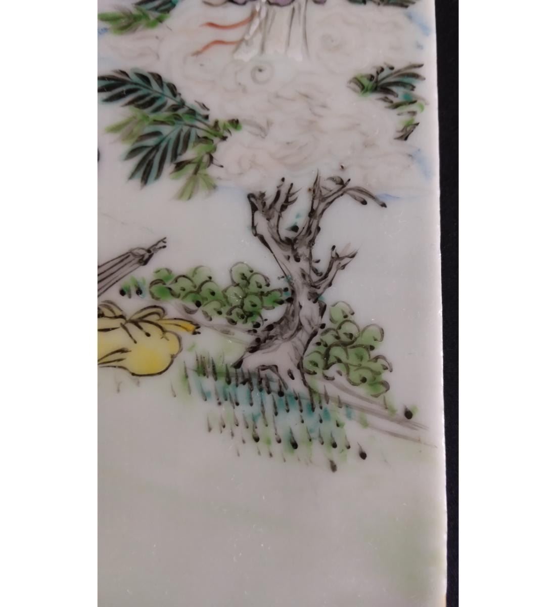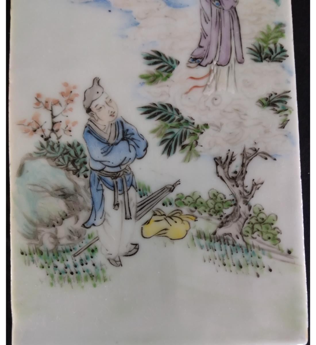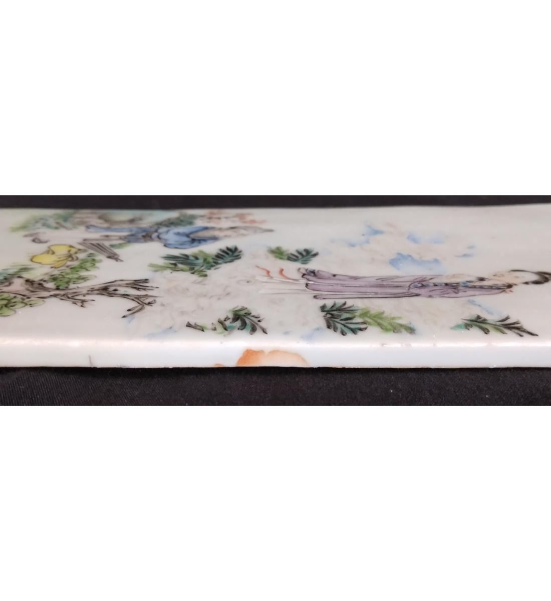 Chinese Famille Rose Porcelain Tile With Figures 19th Century. Measure 20.6 CM X 10.6 CM. Provenance: One Person Private Estate Central Florida.