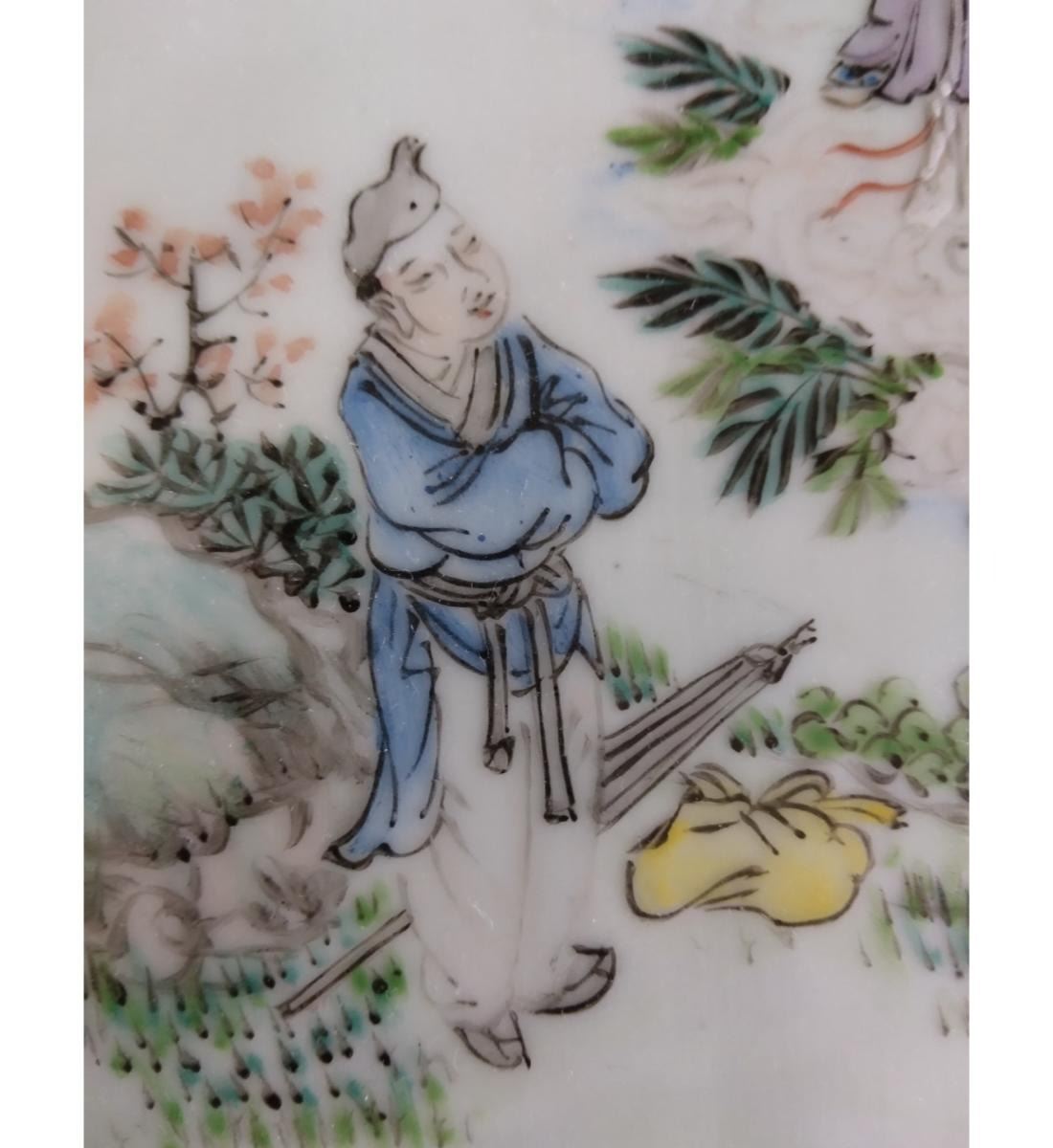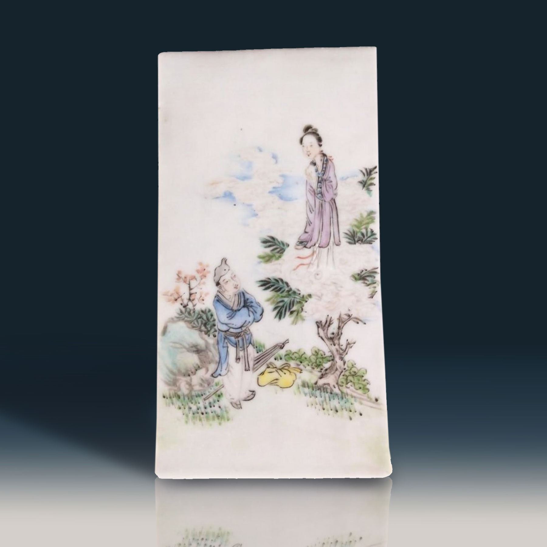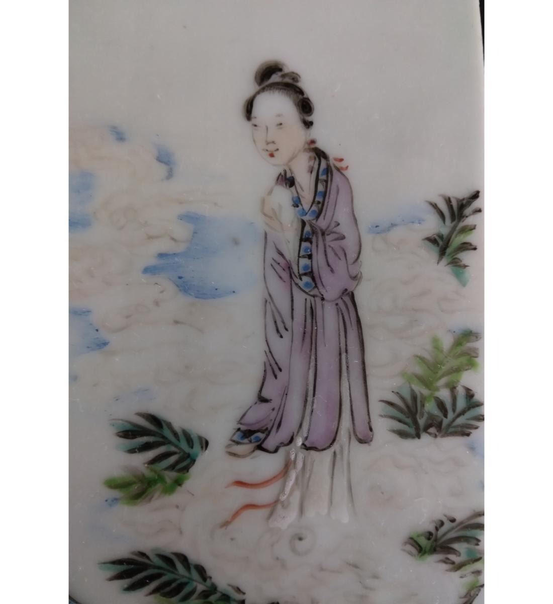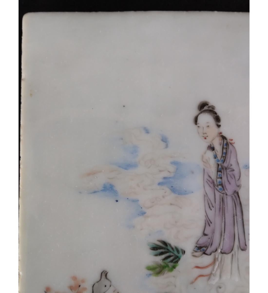 Chinese Famille Rose Porcelain Tile With Figures 19th Century. Measure 20.6 CM X 10.6 CM. Provenance: One Person Private Estate Central Florida.