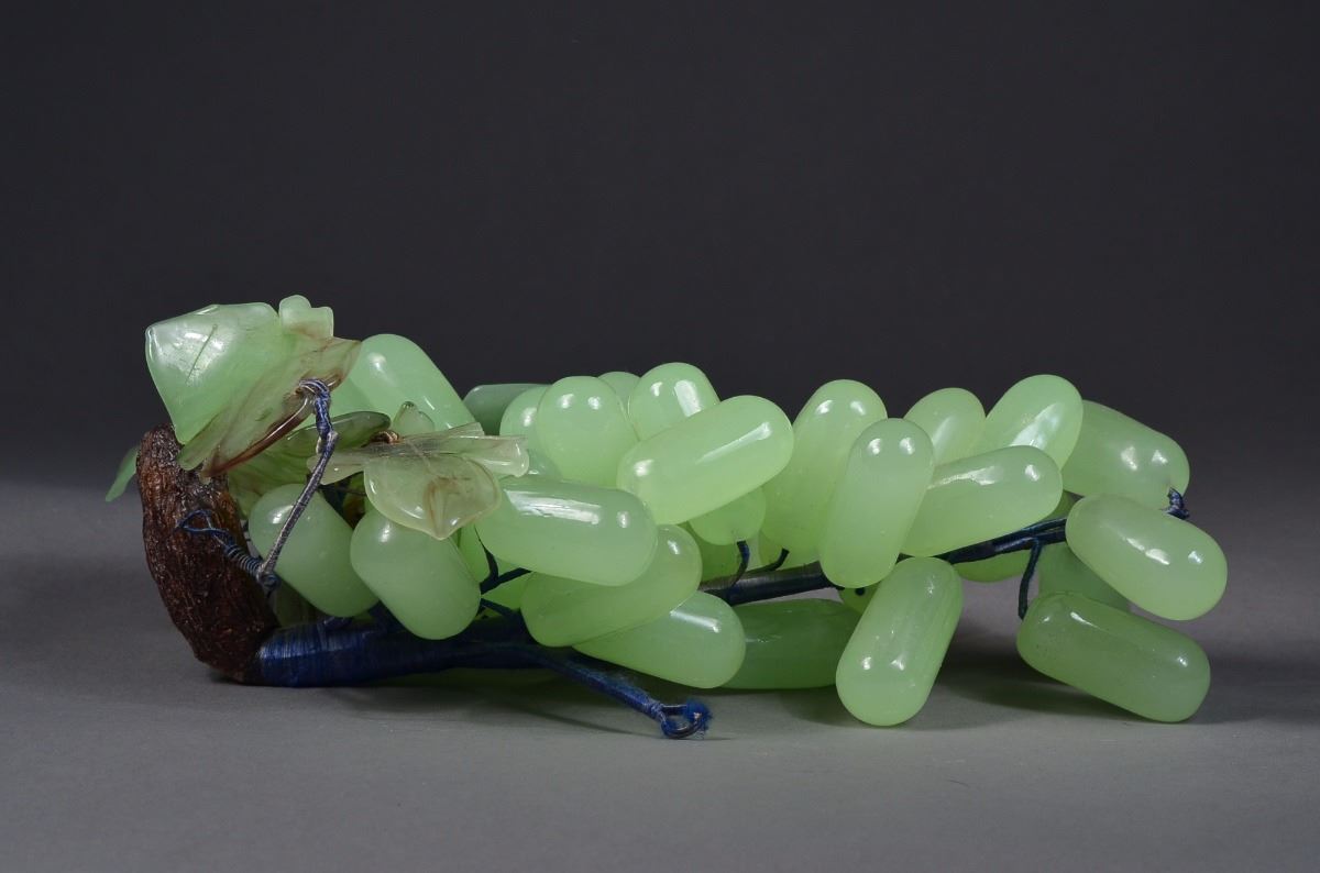 Chinese figural group: featuring grapes on branch; of translucent green colouration; L: 26 cm, 1107 grams