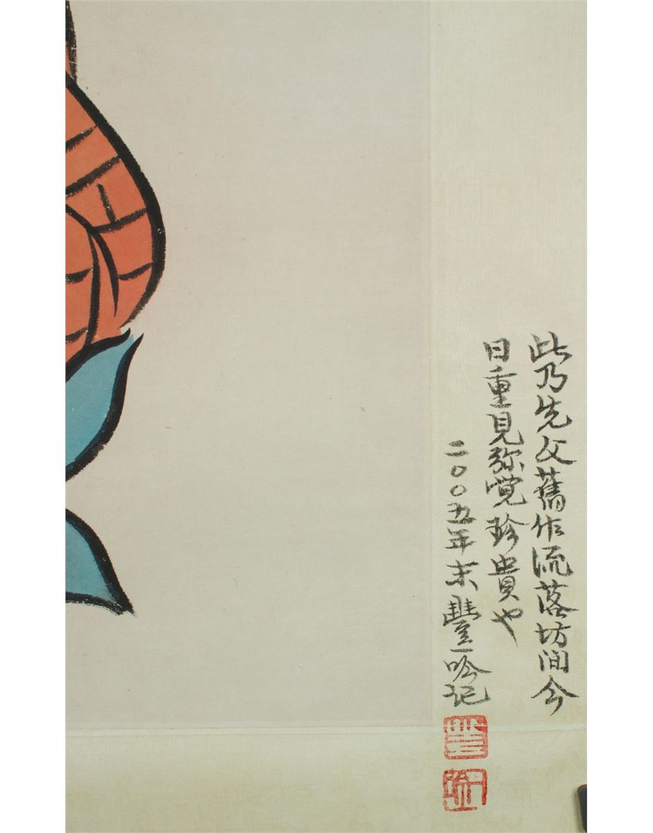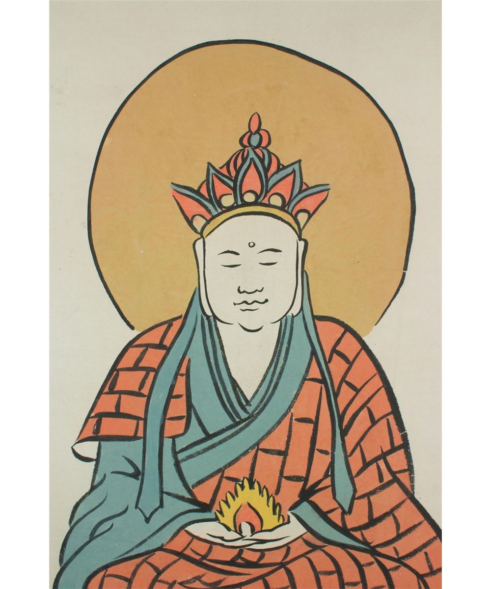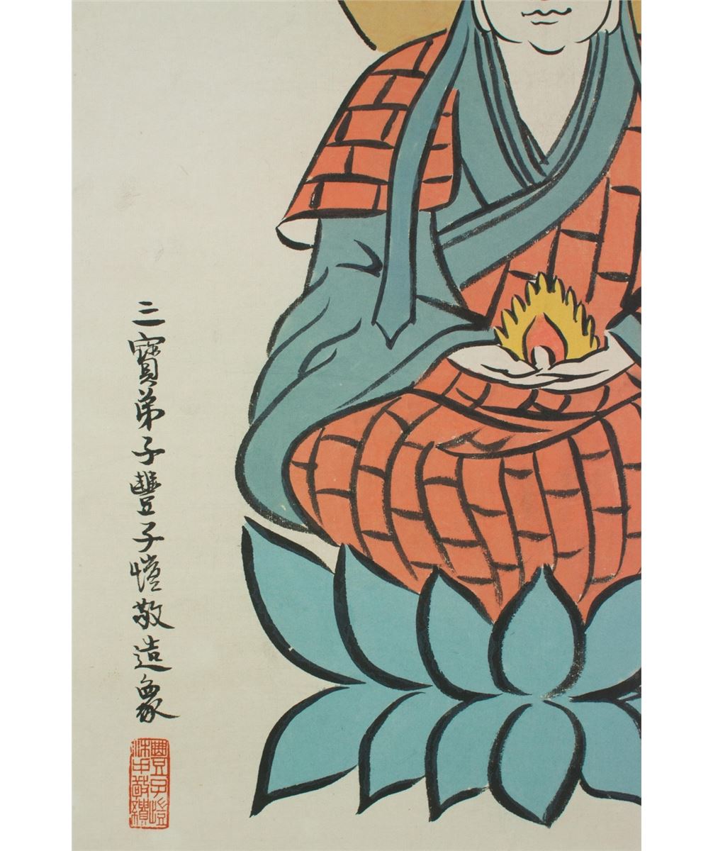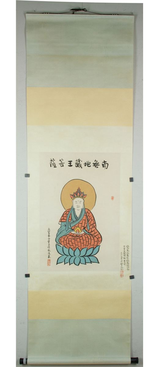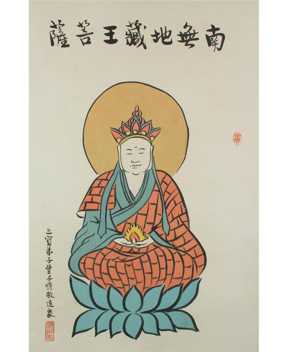 Portrait of Ksitigarbha bodhisattva, hanging scroll, Chinese ink and watercolour on paper, signed by Feng Zikai with two red seals. 63 cm X 43 cm.