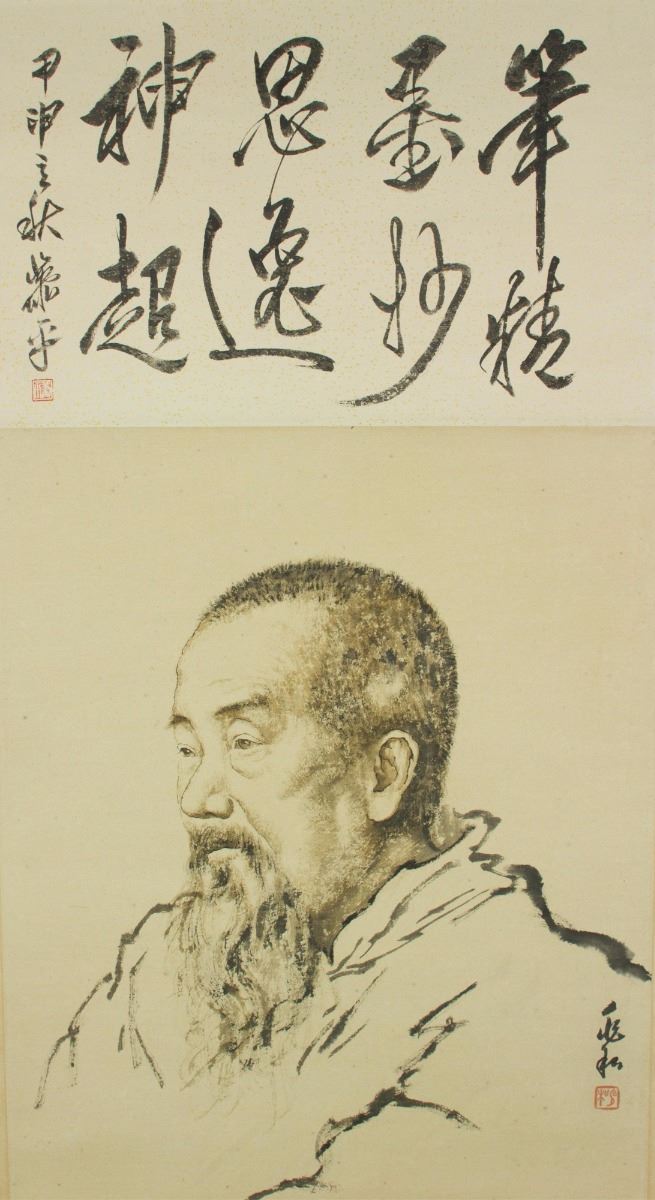 Portrait of a man, hanging scroll. Chinese ink and watercolour on paper, signed by Jiang Zhaohe with two seals. 51 cm X 39 cm.