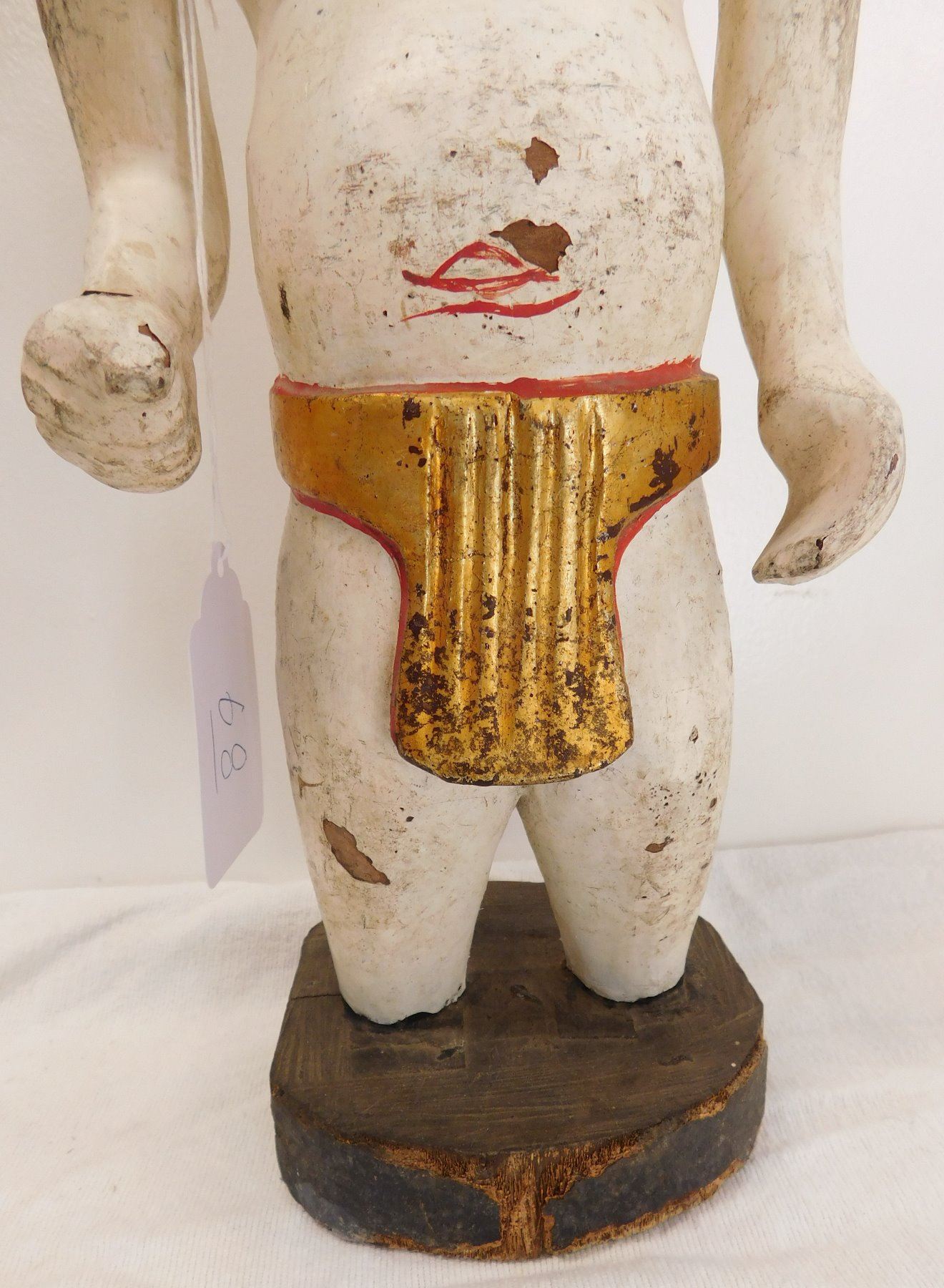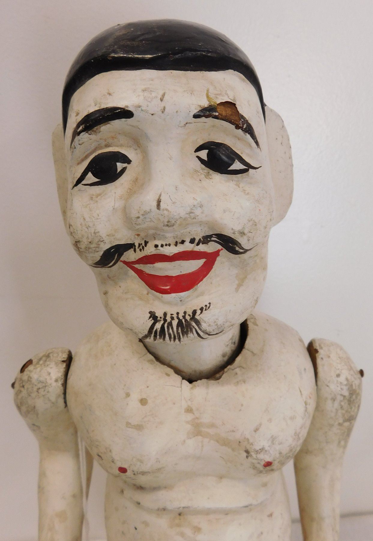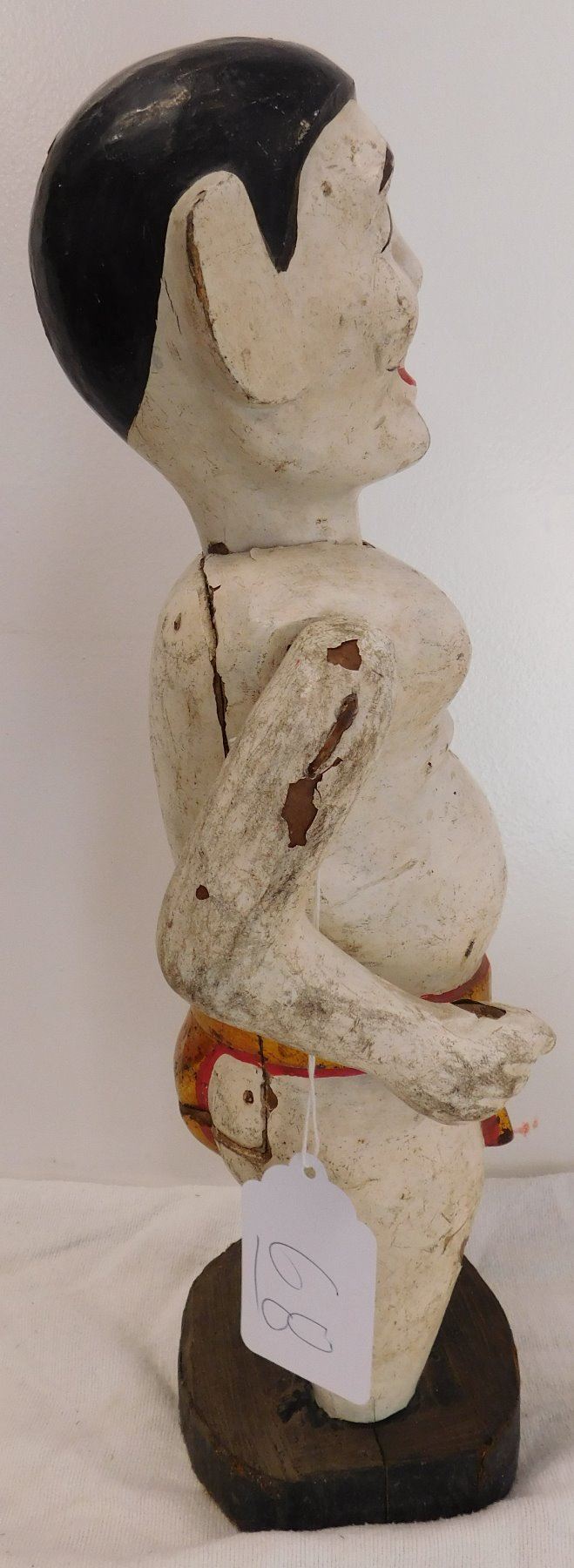 Chinese Figure w/Articulating Arms, circa 1930s. Made of wood and paint, the item measures 7" x 4.75" x 18" tall. China. Arms move at the shoulders. Condition: Some wear and paint loss, see images. Shipping: $35.00 w/insurance and signature, due to size.