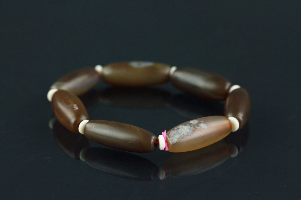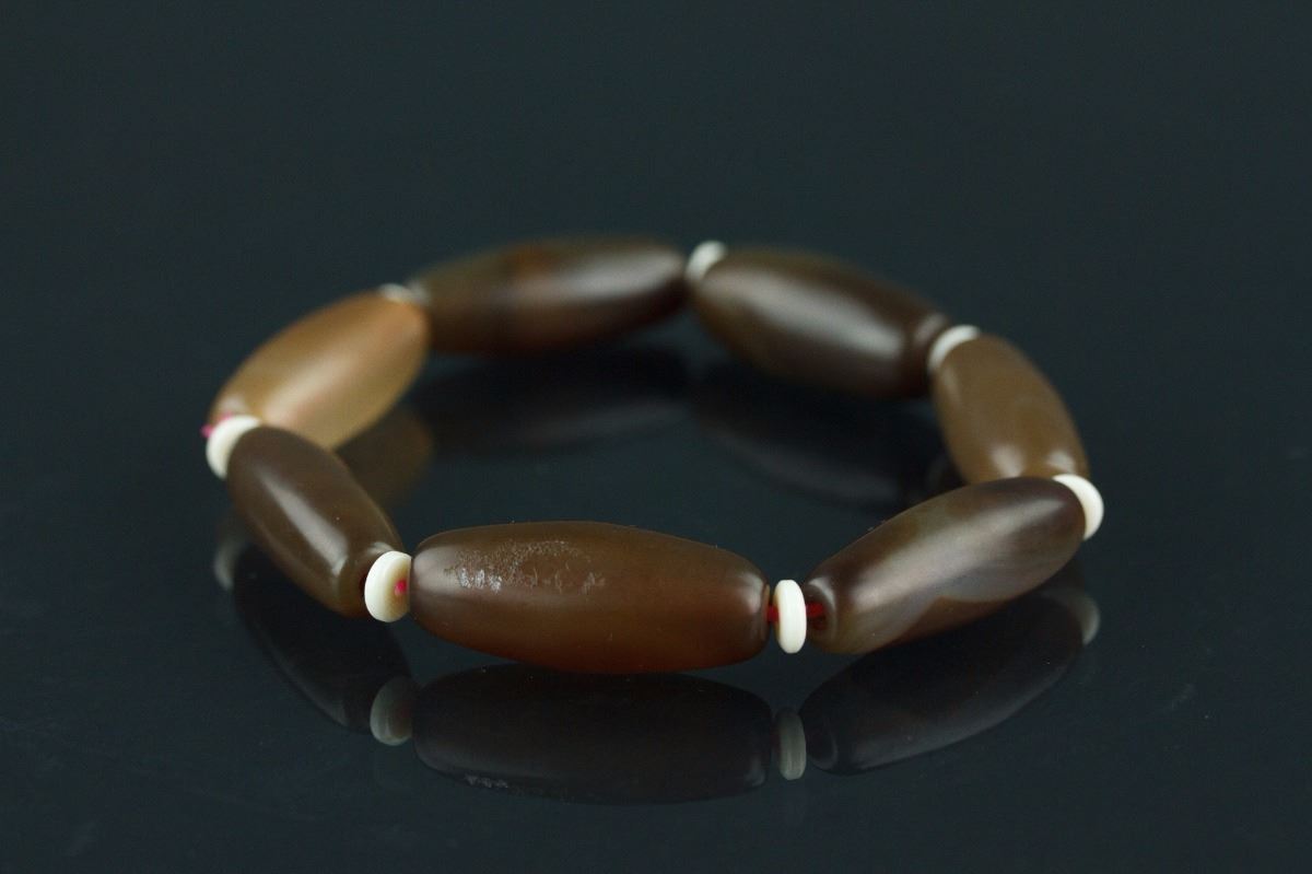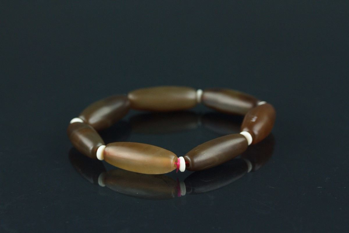 Chinese fine agate bracelet; comprised of brown oval-cut agate beads; D: 6 cm, 41 grams